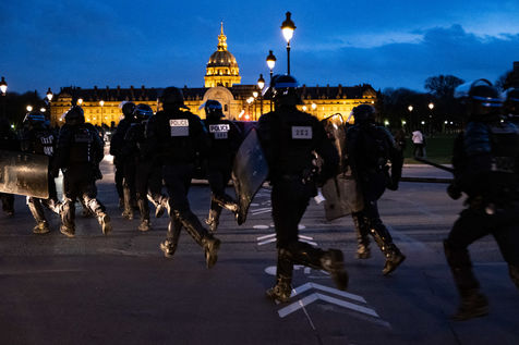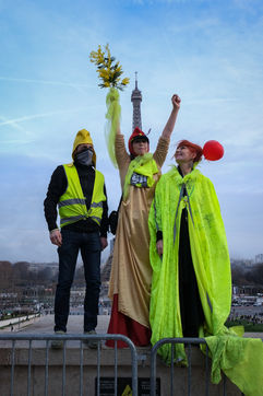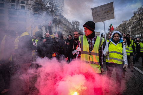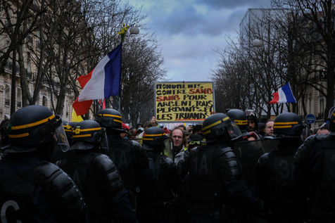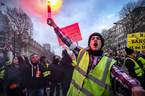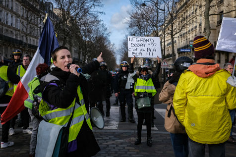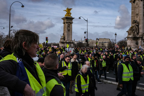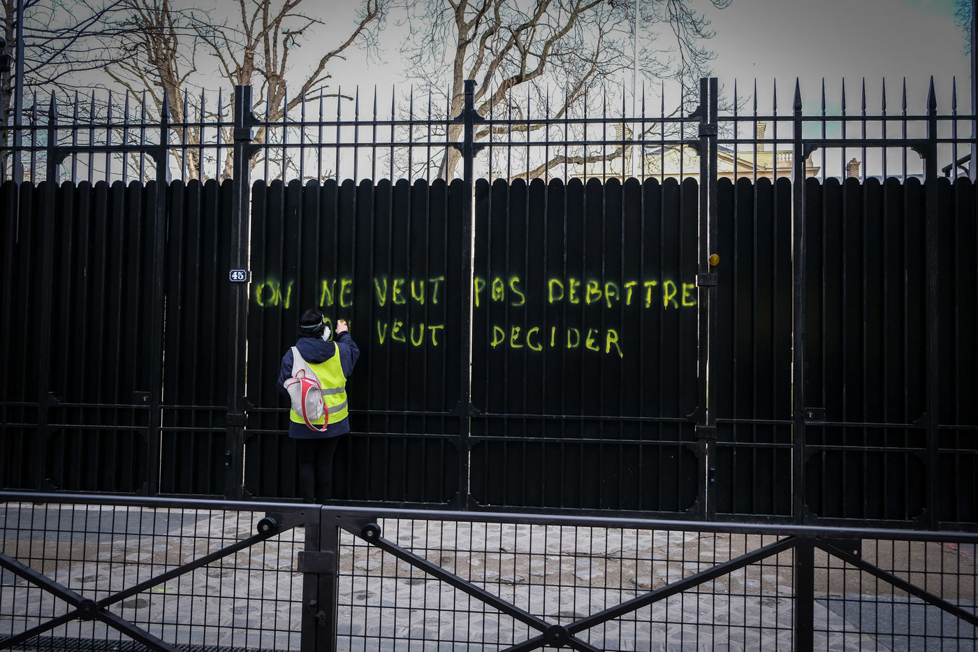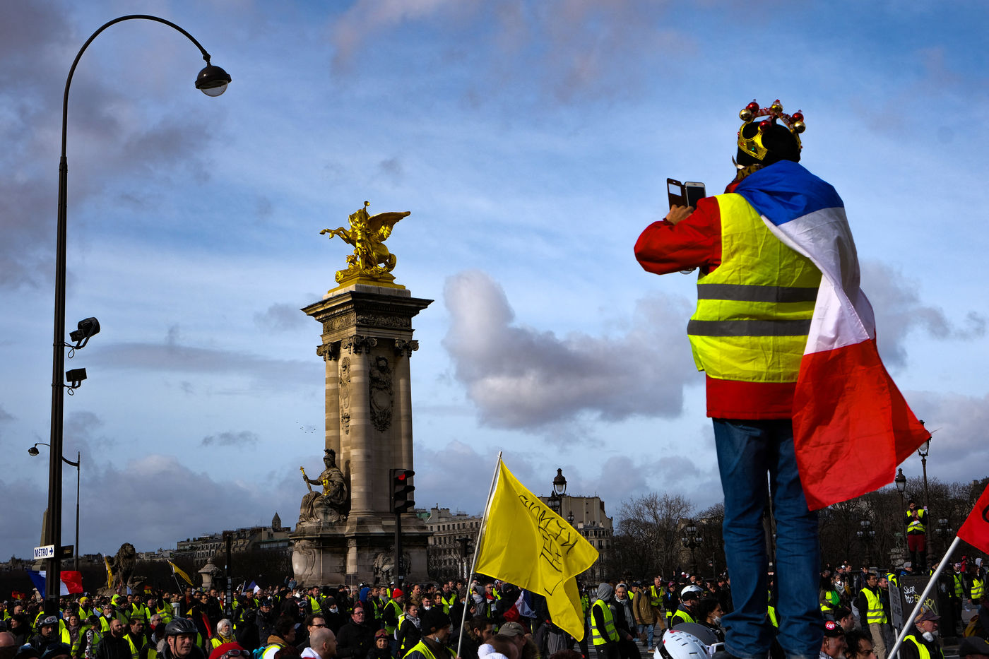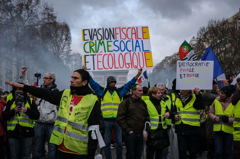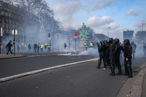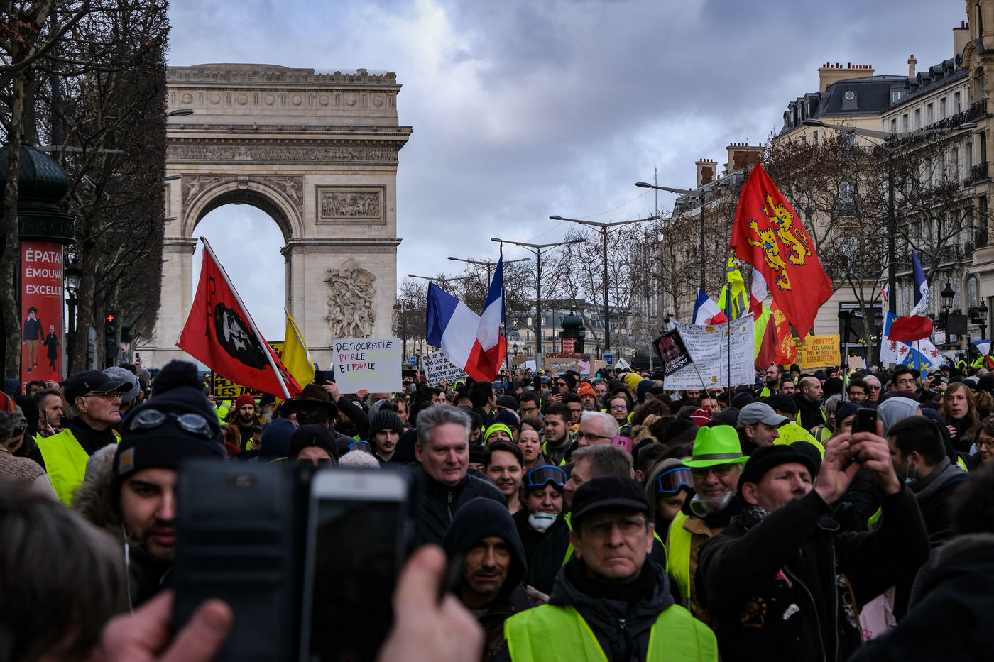 Treizième samedi de mobilisation des gilets jaunes dans la capitale. Le parcours de la manifestation, déposé en préfecture, comprenait des passages devant les lieux de pouvoir de la capitale. C'est devant l'Assemblée nationale que les premiers affrontements violents éclatent. Un manifestant perd quatre doigts lors de l'explosion de ce qui semble être une grenade utilisée par les forces de l'ordre. Après sa prise en charge par des équipes de soin, la progression du cortège se poursuit, marquée par des destructions de matériels urbains, de véhicules, dont certains de l'opération sentinelle, et le saccage de banques. Arrivée au Champs de mars qui devait êre la fin du parcours, les gilets jaunes prennent le chemin du trocadéro pour continuer à avancer dans la capitale avant d'être dispersés par les forces de l'ordre.