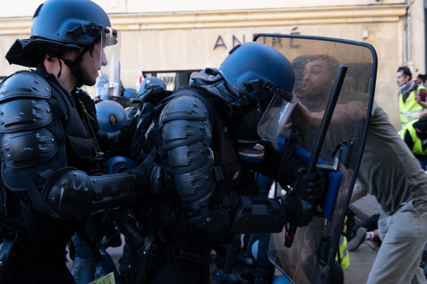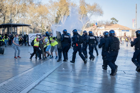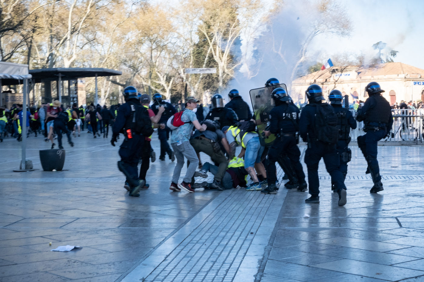 L'acte 19 des gilets jaunes à Montpellier a été marqué par des échauffourées, mais surtout par l'infiltration de policiers parmi les manifestants. Vêtus pour certains de gilets jaunes, ils ont notamment arrêté un homme place de la Comédie. Une scène qui a fait le tour de la toile largement commentée. . Le journée s'est terminée dans un calme relatif place de la Comédie ce samedi 23 mars 2019.