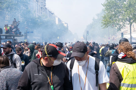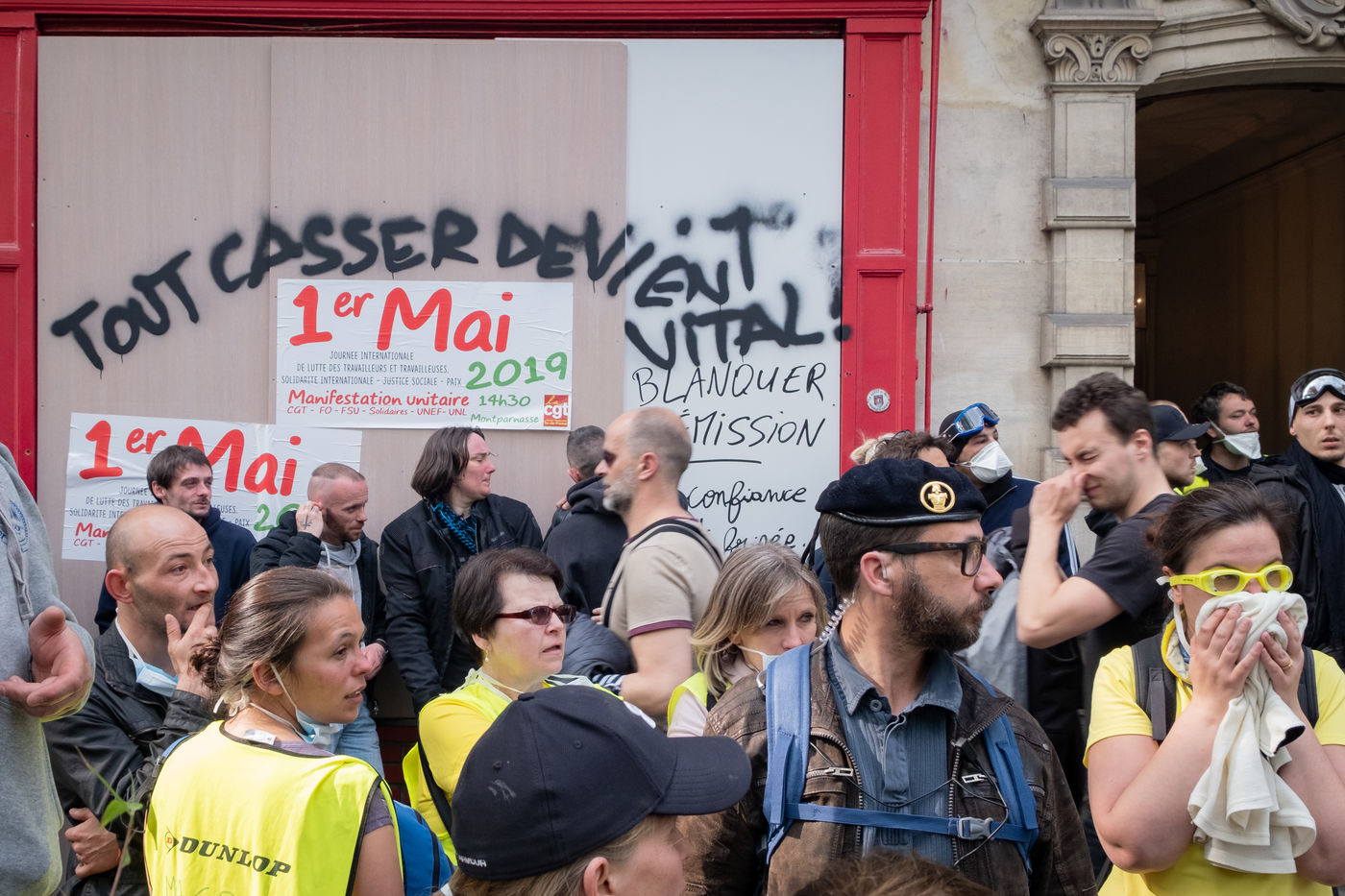 La traditionnelle manifestation du 1er mai était marquée cette année par la présence de gilets jaunes venus se joindrent aux cortèges syndicaux. Plus de 7000 membres des forces de l'ordre étaient déployés dans la capitale face aux risques de violences relayés de part et d'autres. Après des premiers heurts boulevard du Montparnasse, et de nombreuses charges et interperllations, le cortège fini par rejoindre la plade d'Italie en fin de journée.