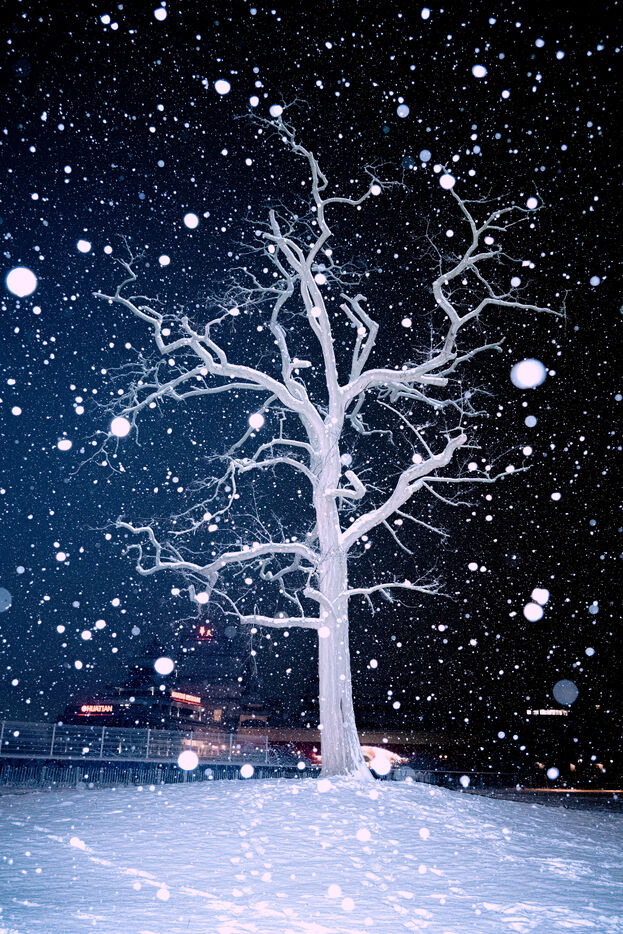 Flash photography pictures of urban landscapes under snow in Ivry sur Seine near Paris in France the 5th of january 2025.