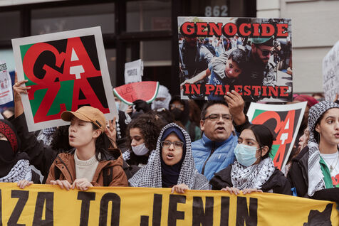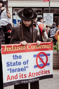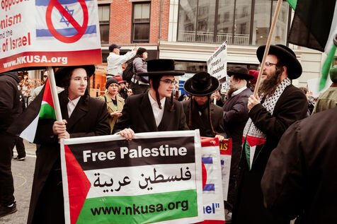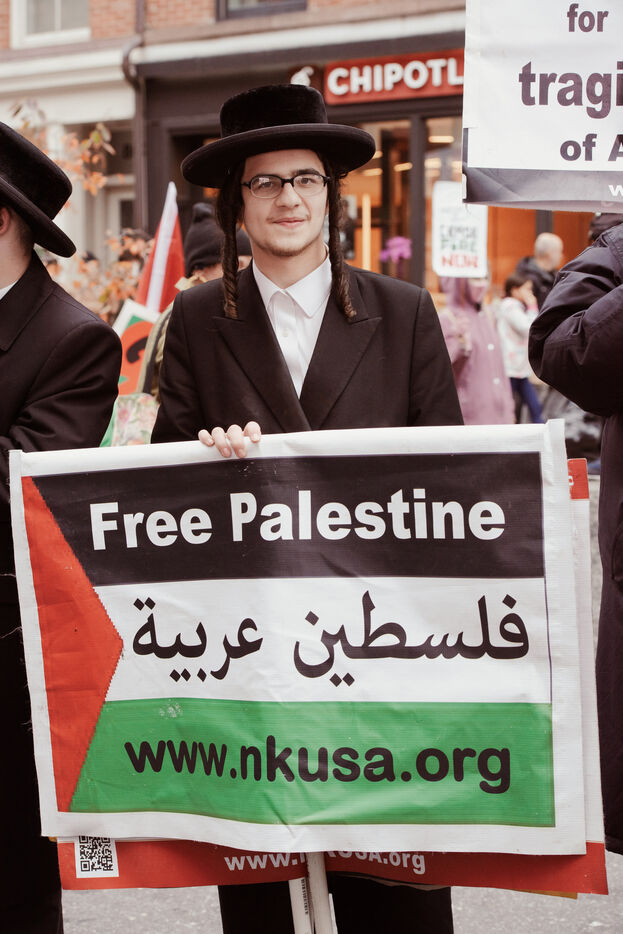 Hundreds of protestors rally in support of Gaza, calling for the end of the war on November 22, 2023. Ultra-orthodox Haredi Jews from anti-zionist organization Neturei Karta were seen holding posters which read "Judaism Condemns the State of "Israel" and its Atrocities". The protesters rallied at Union Square, marched on W 14th Street and headed to the Hudson River, where the NYPD stopped them.