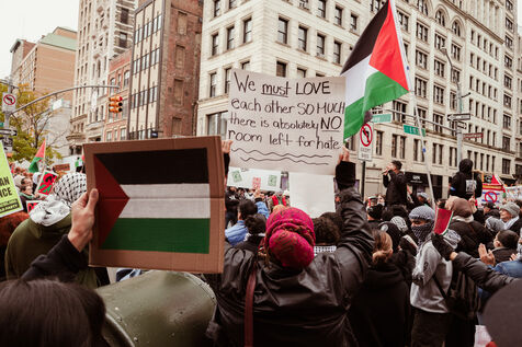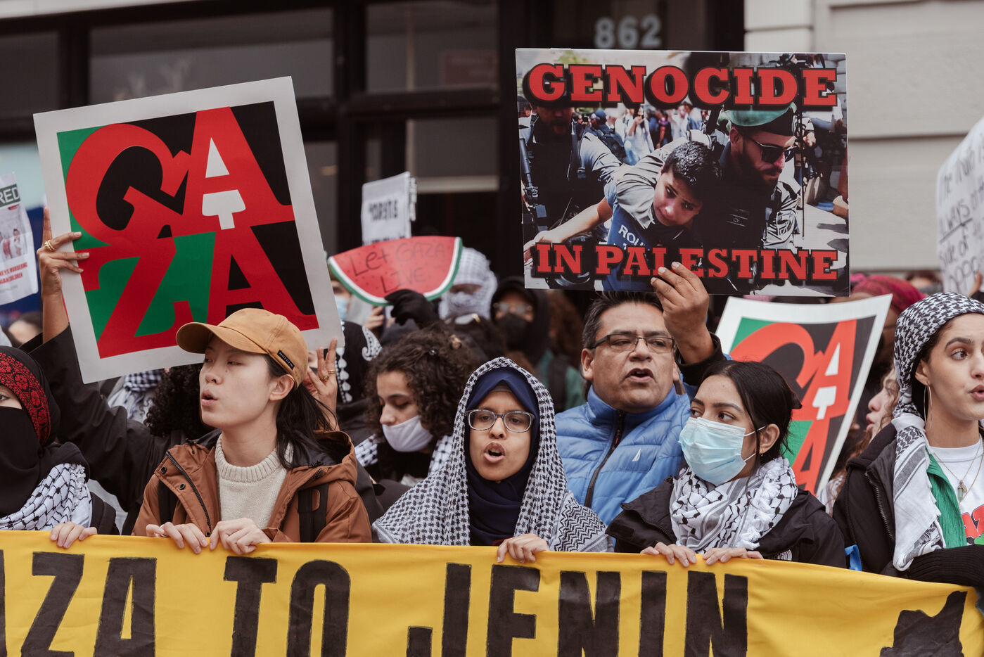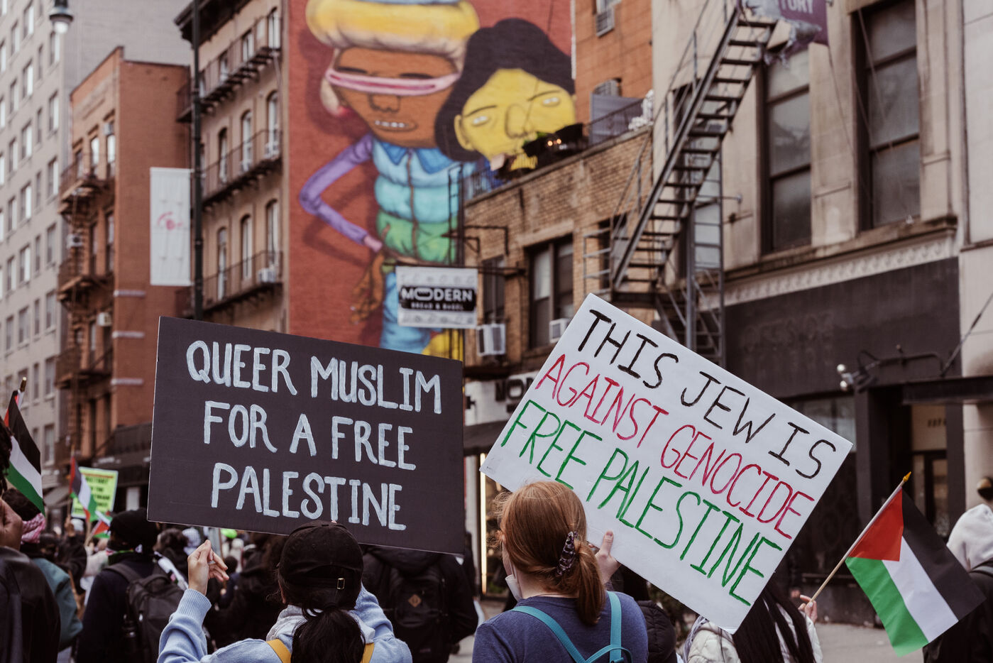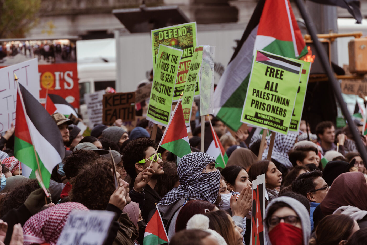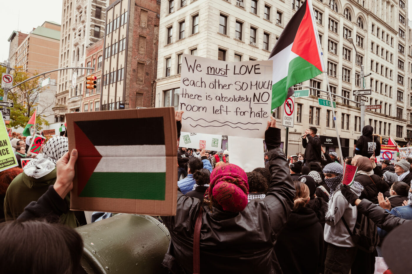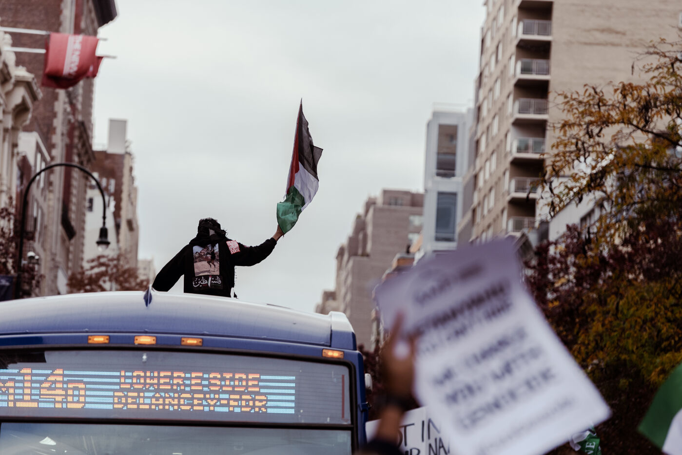 Des centaines de manifestants se sont rassemblés en soutien à Gaza, réclamant la fin de la guerre le 22 novembre 2023. Des juifs ultra-orthodoxes Haredim de l'organisation antisioniste Neturei Karta ont été aperçus brandissant des pancartes sur lesquelles on pouvait lire : « Le judaïsme condamne l'État d'"Israël" et ses atrocités ». Les manifestants se sont rassemblés à Union Square, ont défilé sur la 14e Rue et se sont dirigés vers l'Hudson, où ils furent stoppés par les forces de police new-yorkaise.