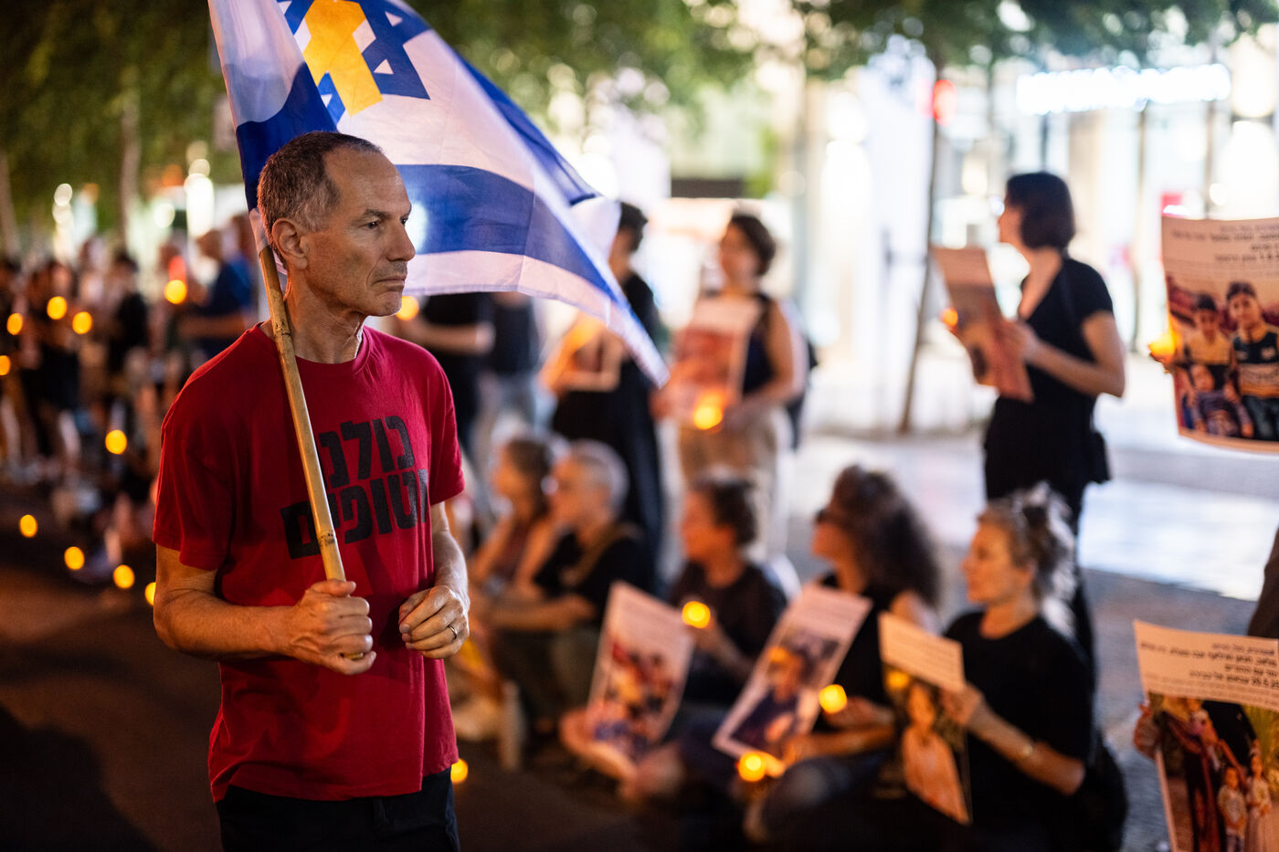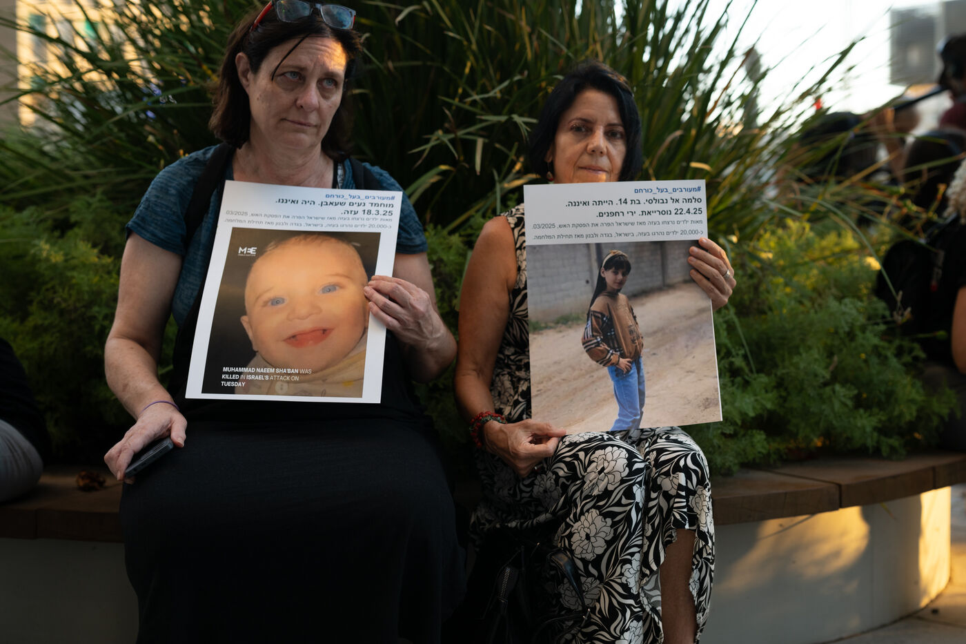 Hundreds of Israelis opposing war stand and sit in the street in a silent and peaceful action, showing photos of Palestinian children from Gaza and the West Bank killed since Israel broke the ceasefire in March 2025, as new ceasefire negotiations are in progress. The vigil took place between Hostages Square and Begin Gate in Tel Aviv—symbolic sites of rallies calling for the release of Israeli hostages held by Hamas in Gaza—creating a space for acknowledging and raising awareness of the reality faced by Palestinians, for exchange, discussion, and sometimes silent confrontation.