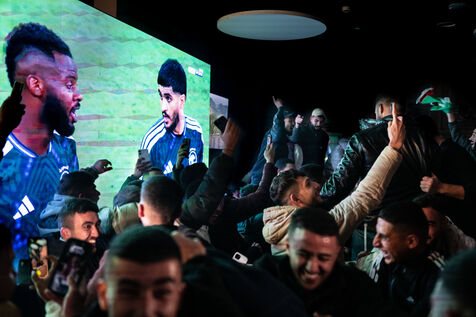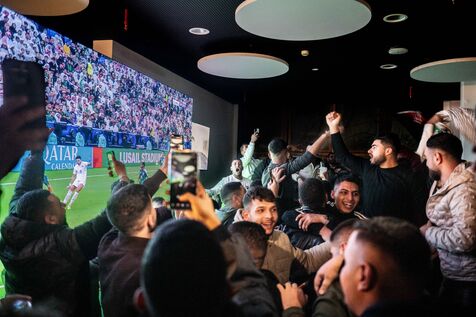 Occupied West Bank - Fans of the Palestinian football team watch the historic quarterfinals of the FIFA Arab Cup on giant screens