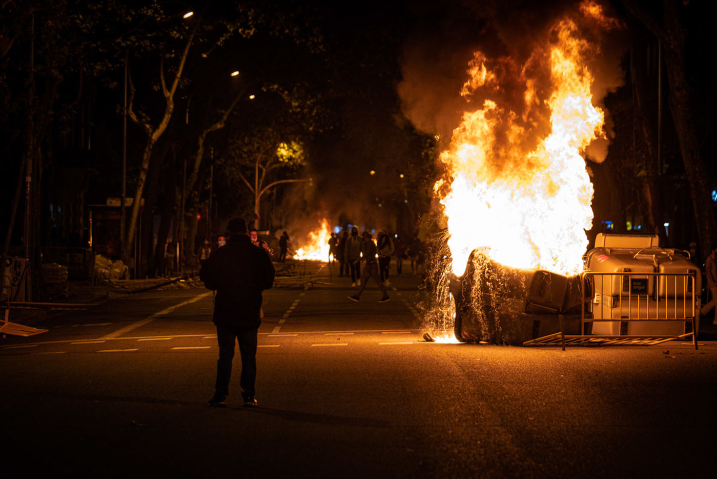 More than one thousand people protested in Barcelona for the disqualification of Quim Torra, the president of Catalonia. Protesters made barricades and disturbs in the city and the throw heads of pigs to the police.