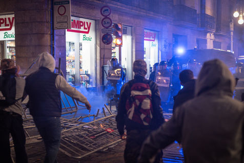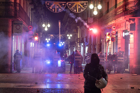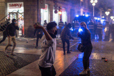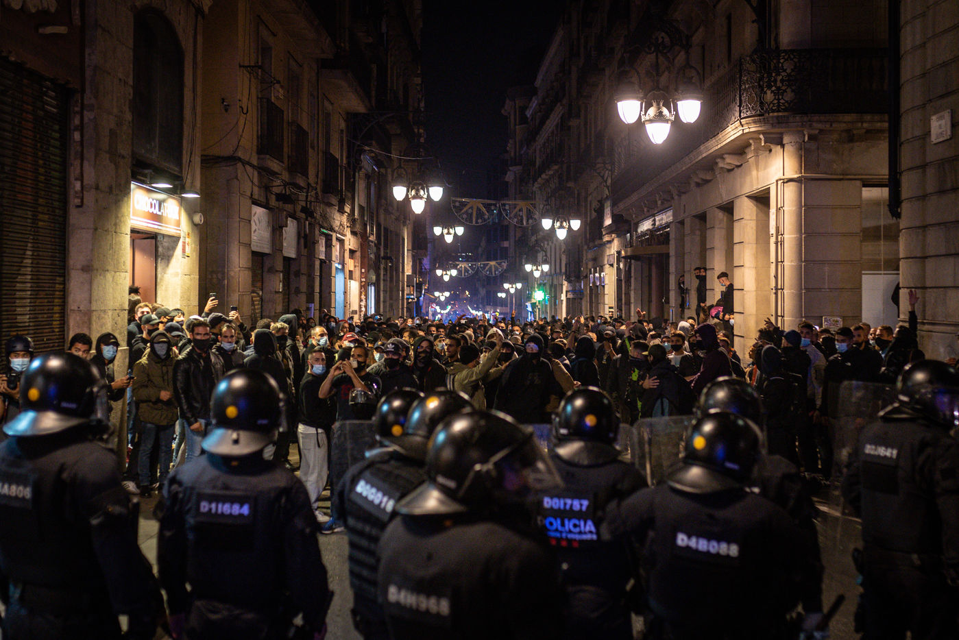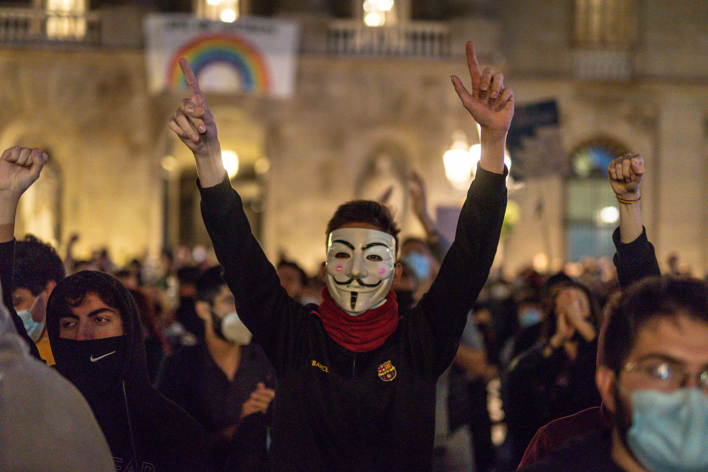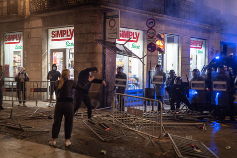 12 arrested and 20 policemen injured in a demonstration against the confinement measures imposed by the government of Spain which have led to serious disturbances between the demonstrators and the police.