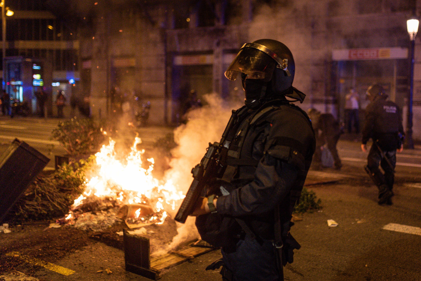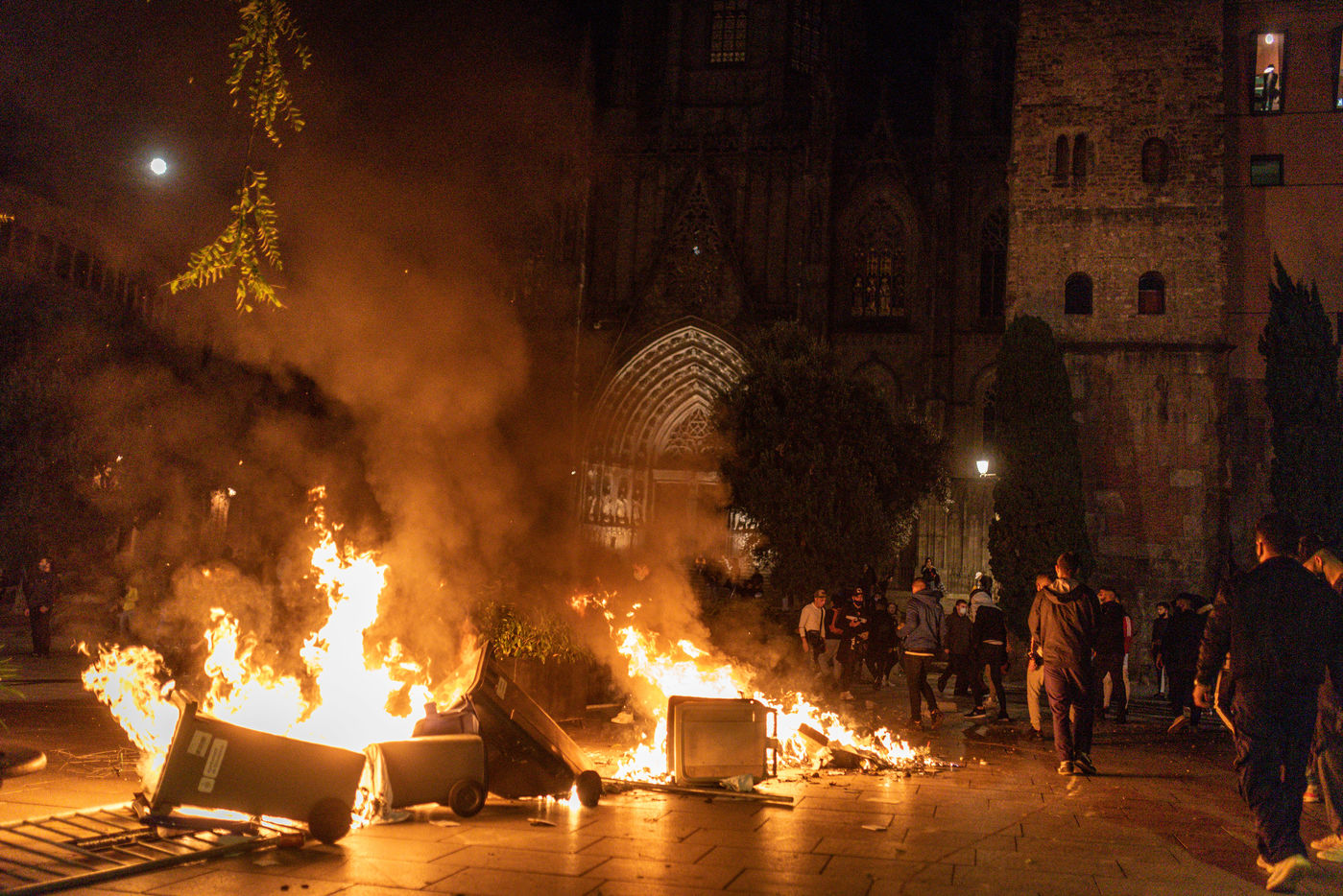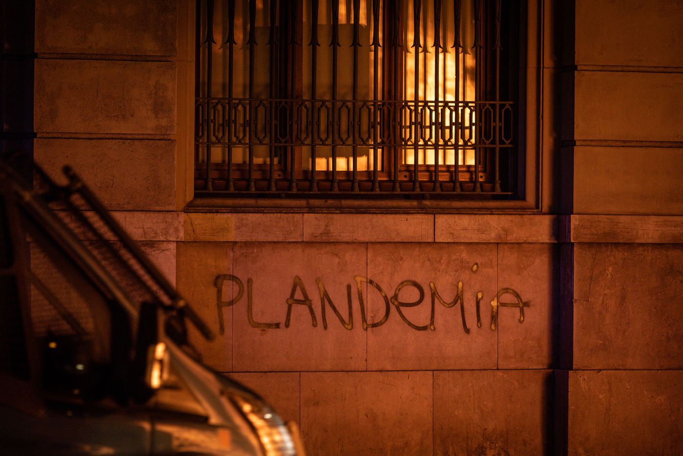 12 arrested and 20 policemen injured in a demonstration against the confinement measures imposed by the government of Spain which have led to serious disturbances between the demonstrators and the police.