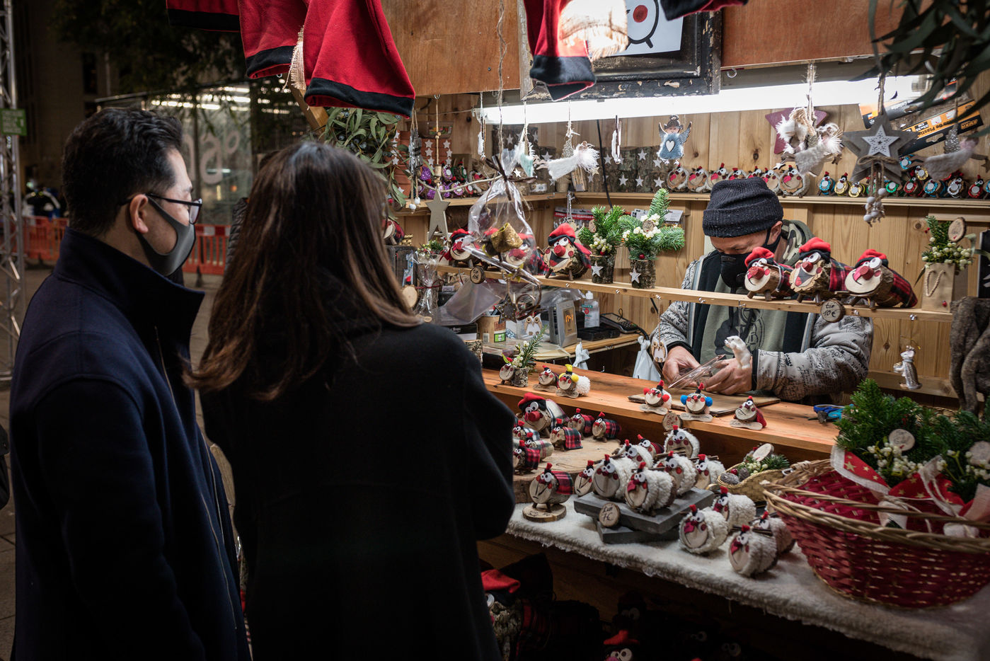 Christmas markets are going to have new restrictions this year due the coronavirus pandemic as temperature controls of the visitors and gauging control. This images are from the main christmas market on the city of Barcelona and it's called Santa Llucia Christmas Market.