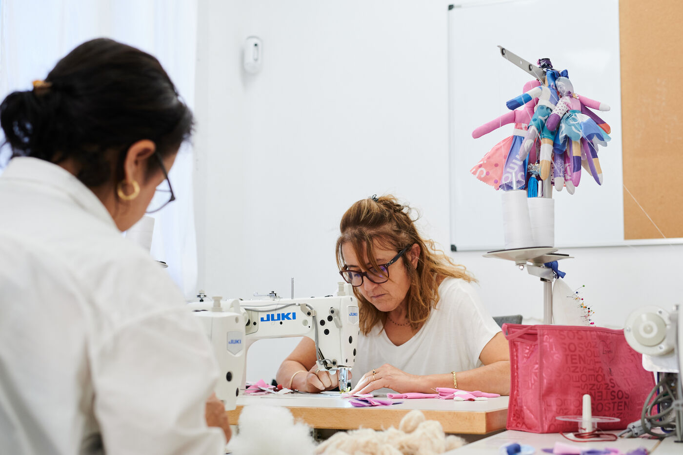 Ministerial visit by Marie-Agnès Poussier-Winsback, Minister for the Social and Solidarity Economy, to the 13 ATYPIK sewing workshops in Marseille. 13 ATIPIK is a textile workshop where sewing valorizes used fabrics to transform them into clothing or accessories, and employs 35 people in social integration.