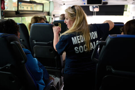On Sundays, the Destination Mucem bus travels around the city of Marseille with a social mediator, taking local residents directly to the museum. This free service is part of a socially committed policy to make the museum more accessible to a wider public (neighbourhoods with poor public transport links, people not used to visiting exhibitions).