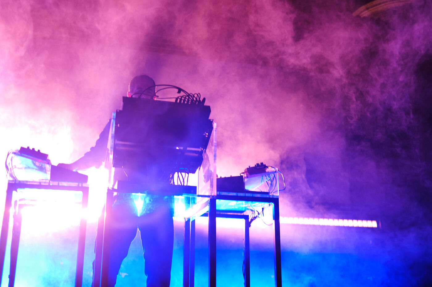 DJ and producer Etienne de Crecy, the iconic figure of the French Touch movement, performing at the Full Moon Party in Marseille.