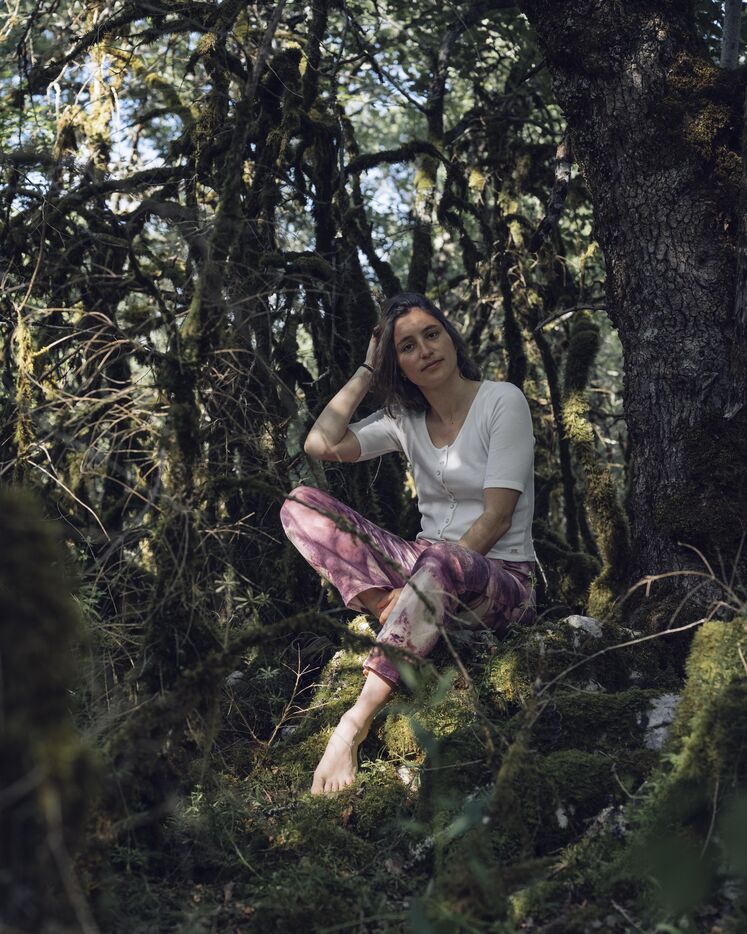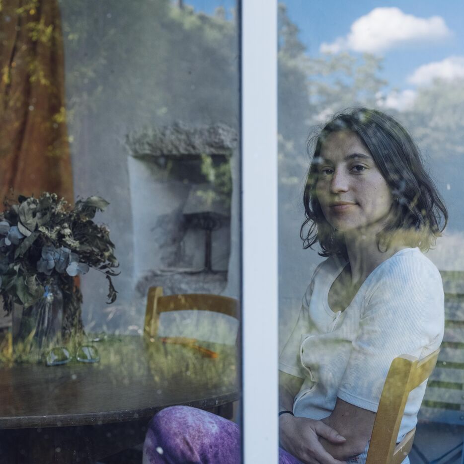 Portrait of the writer Adele Yon at home, in the house where she wrote her first book titled "Mon vrai nom est Elisabeth". After investigating the fate of her great-grandmother, who was institutionalized and lobotomized, she explores in this novel the silences of family lineage and the blind spots of memory. A graduate of the École Normale Supérieure and a restaurant chef, she now embraces a personal, complex, and liberating narrative, written in the quiet of a secluded house in the Lot region. Photograph by Anita Volker & Cyril Caine / Hans Lucas.