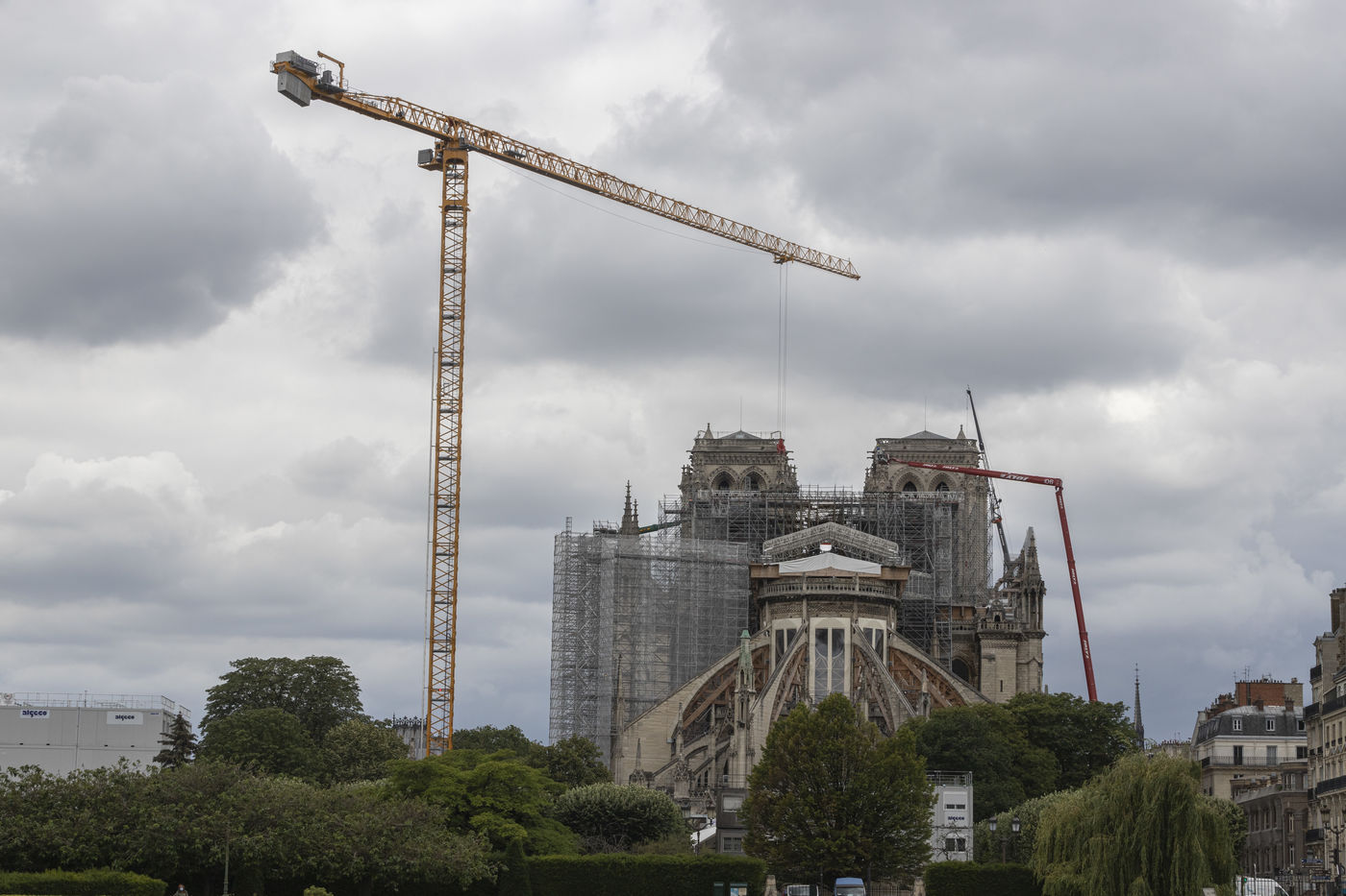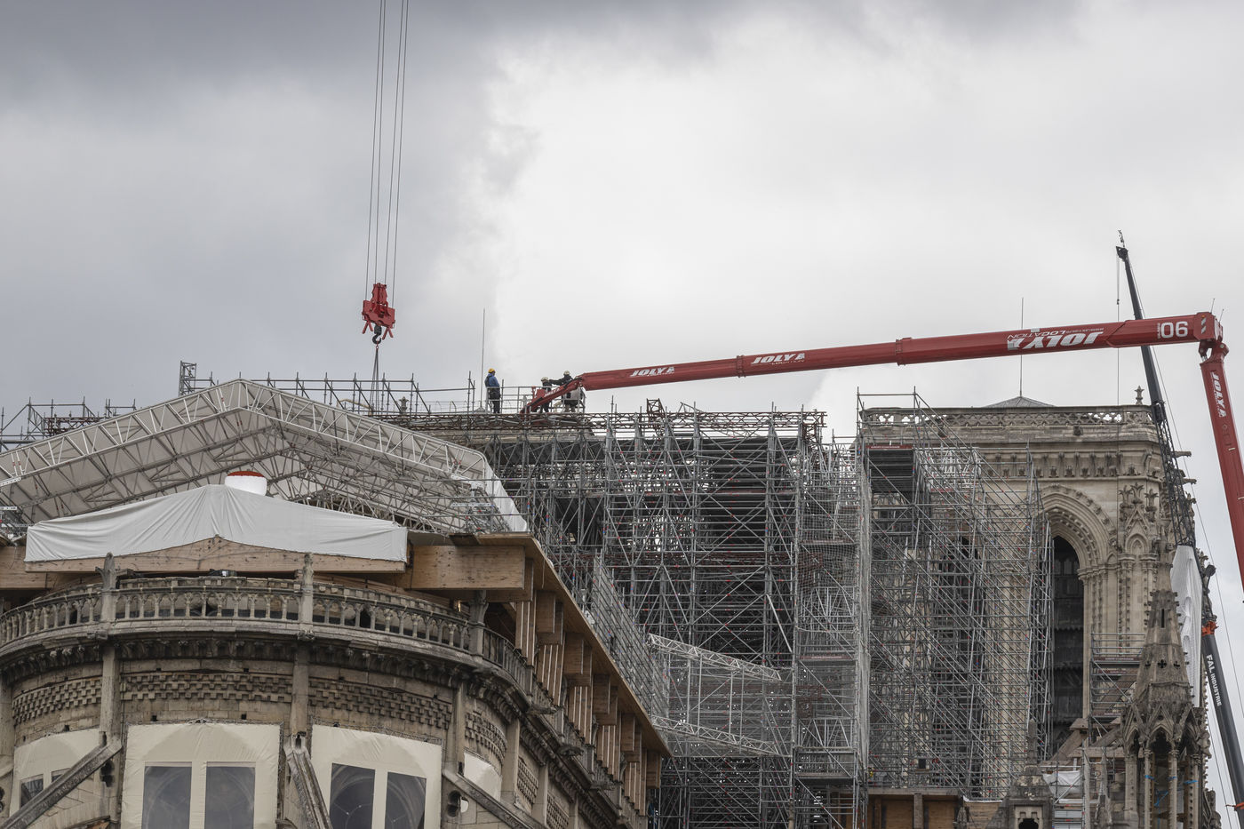 En ce 8 Juin 2020, un peu plus d'un an après l'incendie qui a détruit la flèche de la Cathédrale de Notre-Dame de Paris le 15 Avril 2019, c'est le premier jour de démontage de l'échafaudage ravagé par les flammes et qui menace de s'effrondrer à chaque instant.