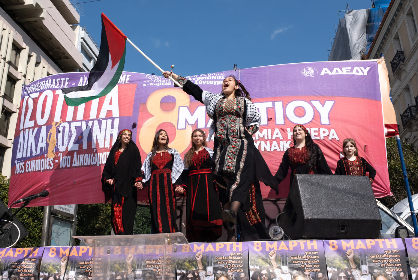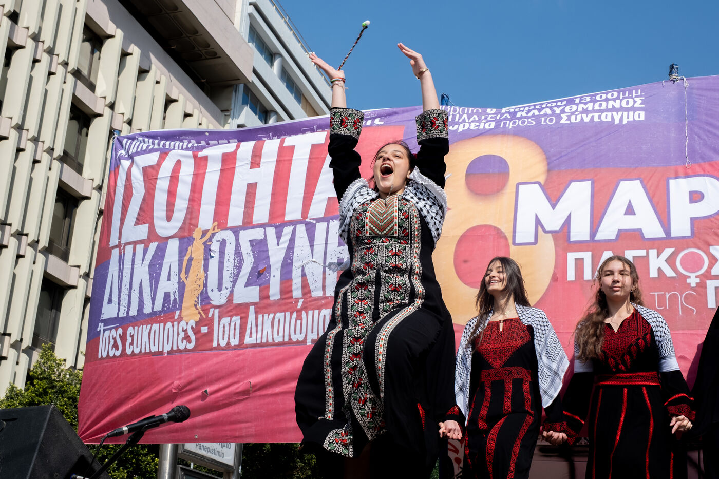 Women and allies take part in a rally for International Women’s Day in central Athens, Attica, Greece, on March 8, 2026. The demonstration highlights feminist activism and demands for equal rights and social justice.