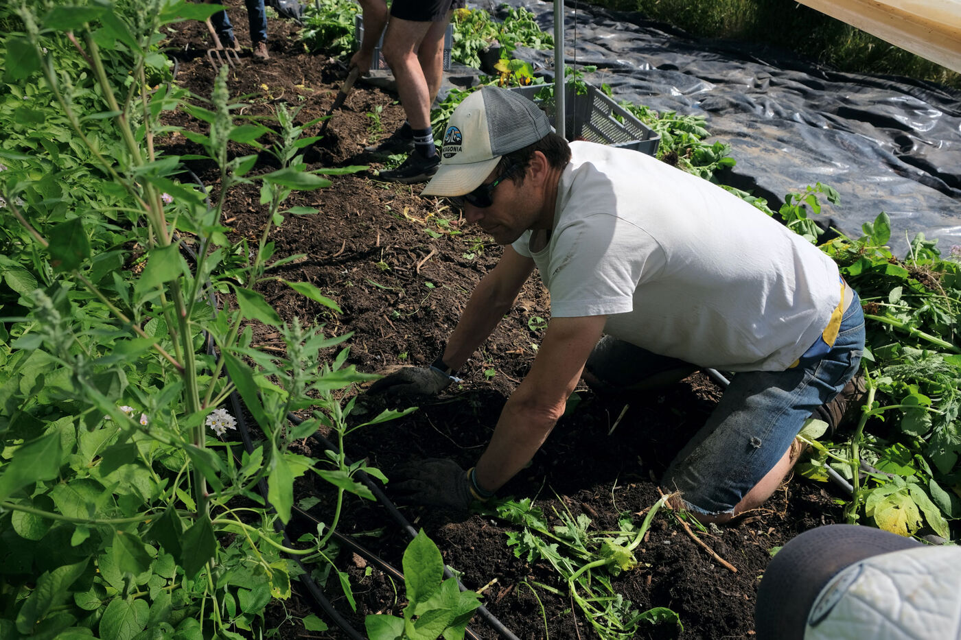 Dans cette ferme qui existe depuis maintenant 3 ans, Julien accueille de nombreux bénévoles qui permettent la gestion et la vie de la ferme, des semis aux plantations, en passant par les récoltes, les ventes à la ferme, le désherbage.