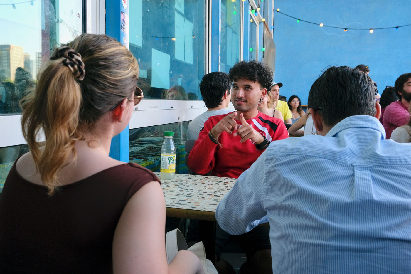 Hearing-impaired people, deaf people, hearing people, translators - everyone comes to enjoy the simple experience of a drink with friends.