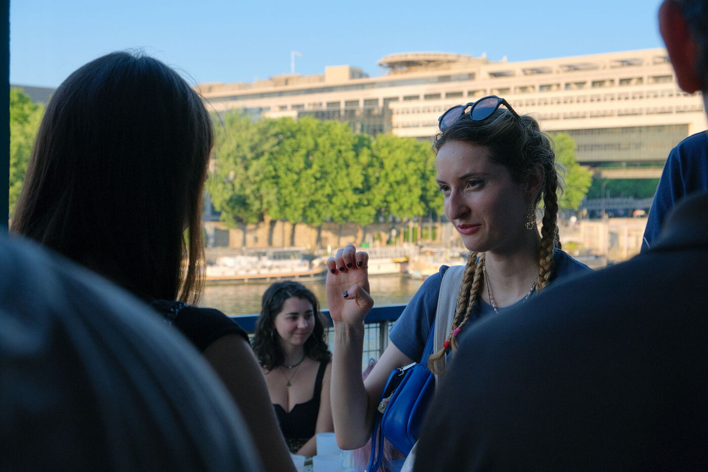 Des malentendants, des personnes sourdes, des entendants, des traductrices, tout le monde vient faire l'expérience simple d'un verre entre ami.e.s.