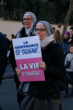 Jeunes chrétiens ou catholiques, parents, enfants, familles, ont exprimé leur opposition à cette loi ainsi qu'au texte instaurant une aide à mourir, qui doit être examiné à partir de mardi dans l'hémicycle avant un vote solennel prévu le 28 janvier.