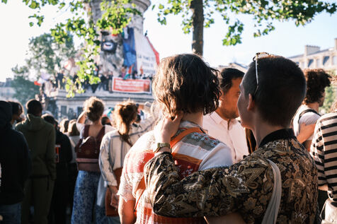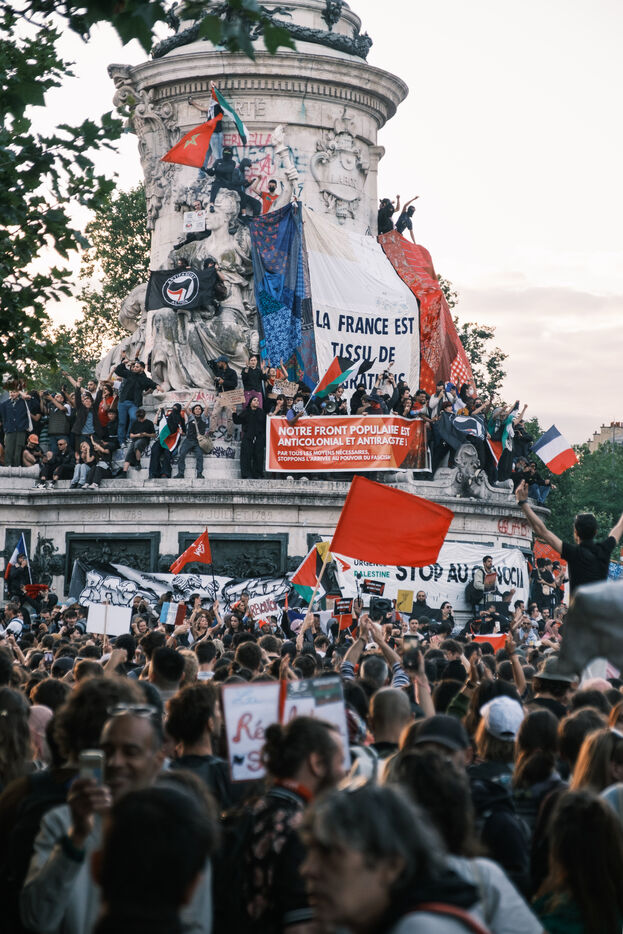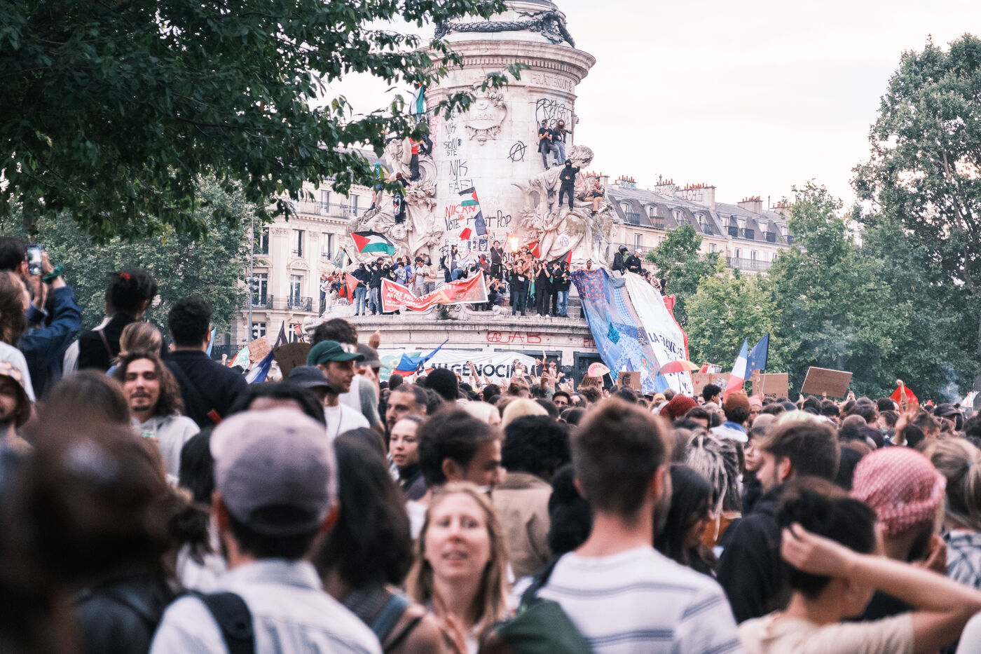 Des milliers de manifestants se sont rassemblés sur la place de la République, à Paris, suite aux résultats du second tour des élections législatives anticipées qui a annoncé le Nouveau Front Populaire (NFP) en tête.