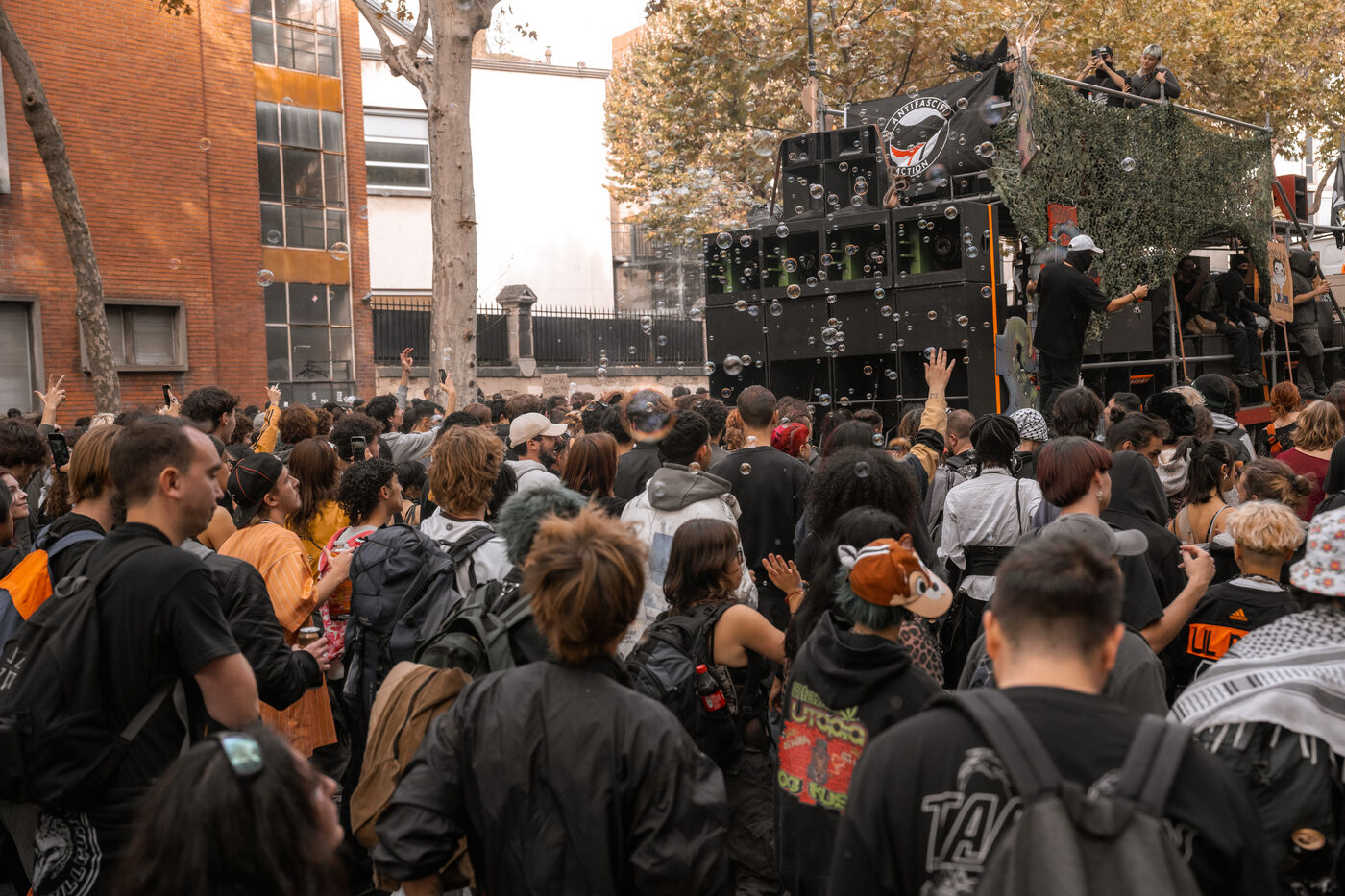 Free party groups organized a musical and protest event to denounce the physical and institutional violence used to prevent these events from happening.