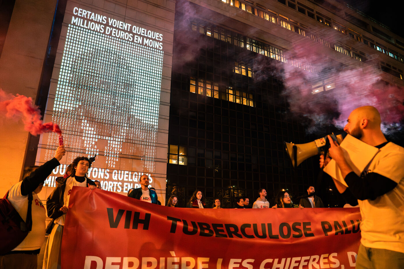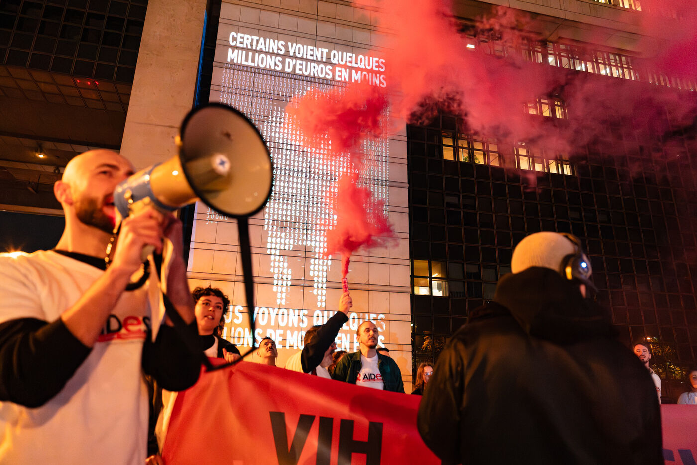 Action des associations AIDES et Coalition PLUS contre le détournement du budget de la santé mondiale