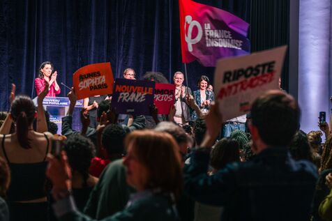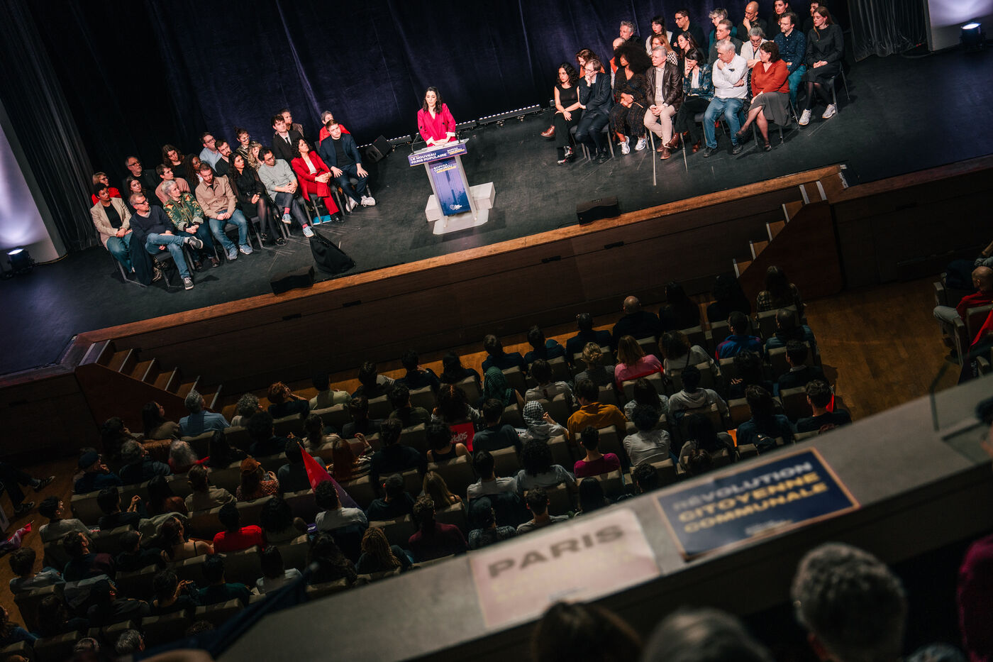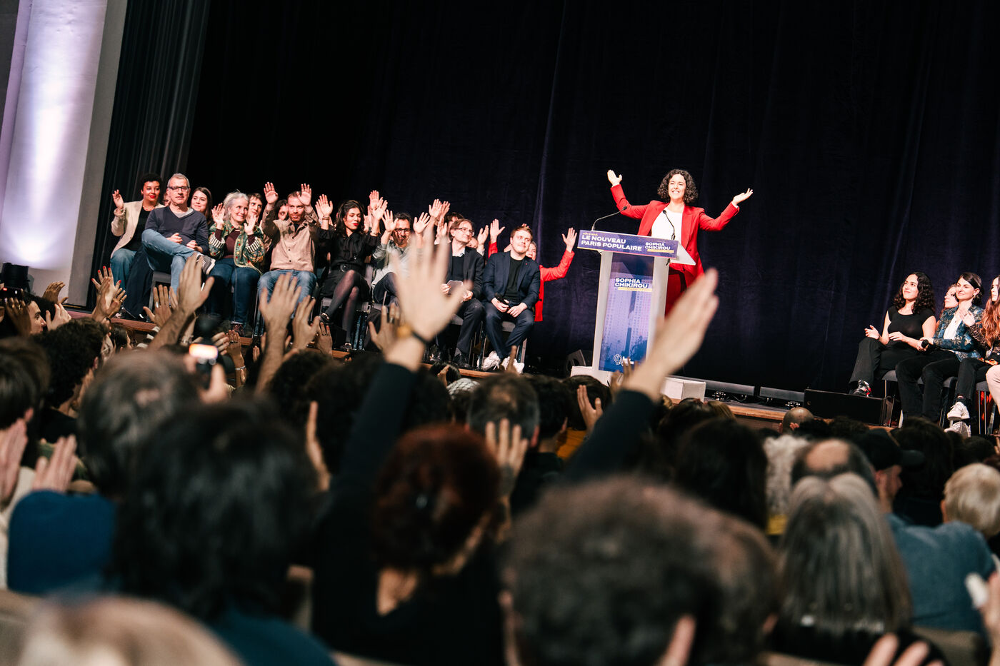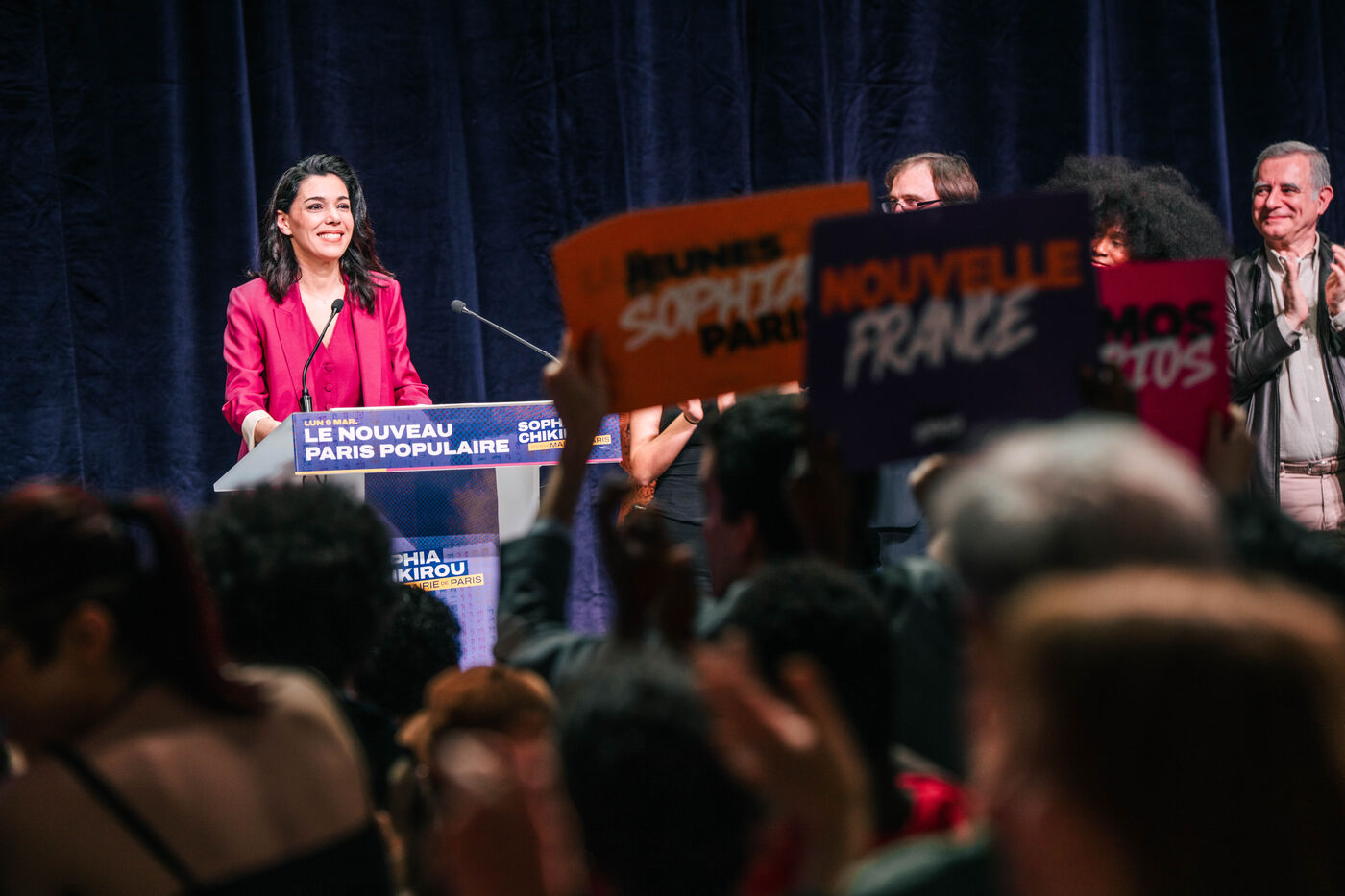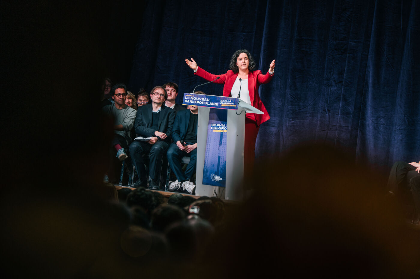 Sophia Chikirou, the LFI candidate for mayor of Paris, held her final campaign rally at the Maison de la Mutualité in Paris before the first round of municipal elections. She was supported by Jean-Luc Mélenchon, the founder of La France Insoumise, who delivered a lengthy closing speech.