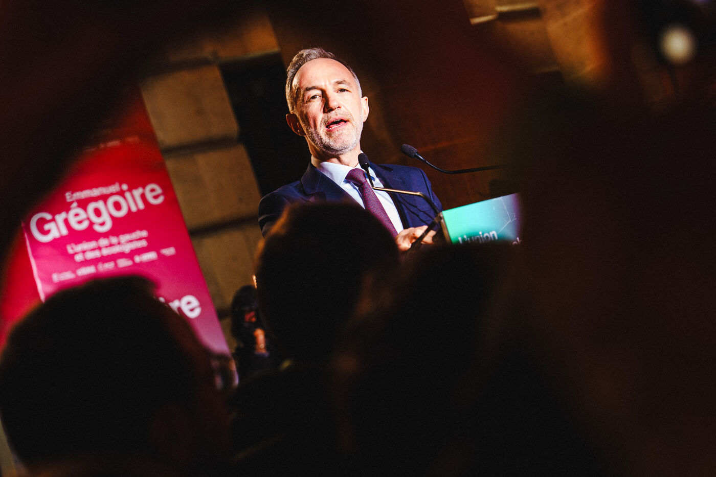 Le candidat de la gauche unie aux élections municipales de Paris, Emmanuel Grégoire, a attendu les résultats du second tour à la Rotonde Stalingrad, avant de prononcer son discours après l'annonce de sa victoire, face aux candidates Rachida Dati et Sophia Chikirou.