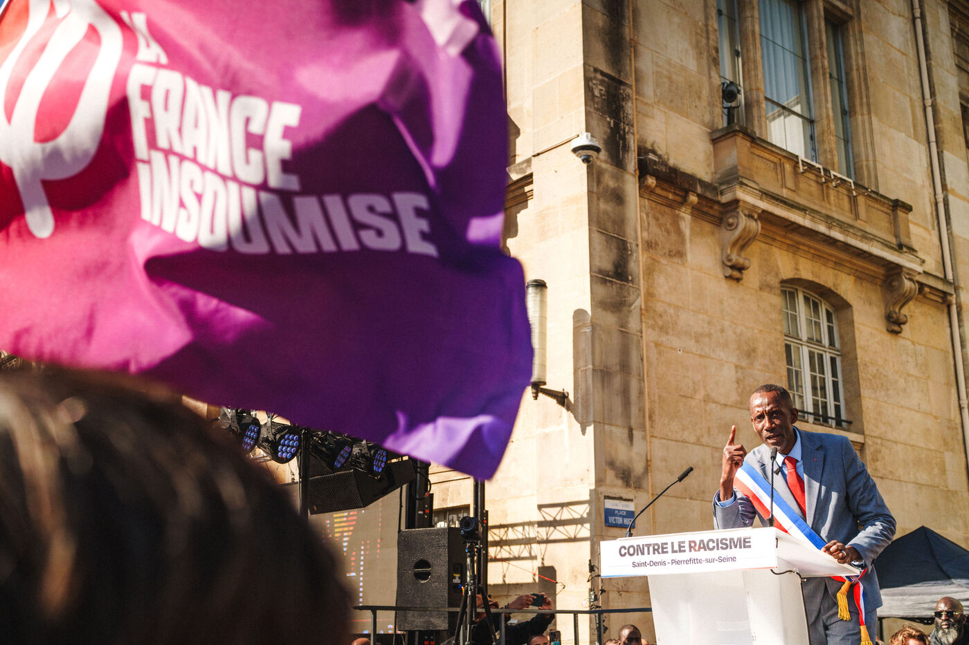 In Saint-Denis Pierrefitte, the newly elected mayor of La France Insoumise, Bally Bagayoko, was the target of racist remarks during and after his election campaign. A rally in support of him was organized in front of the Saint-Denis town hall.