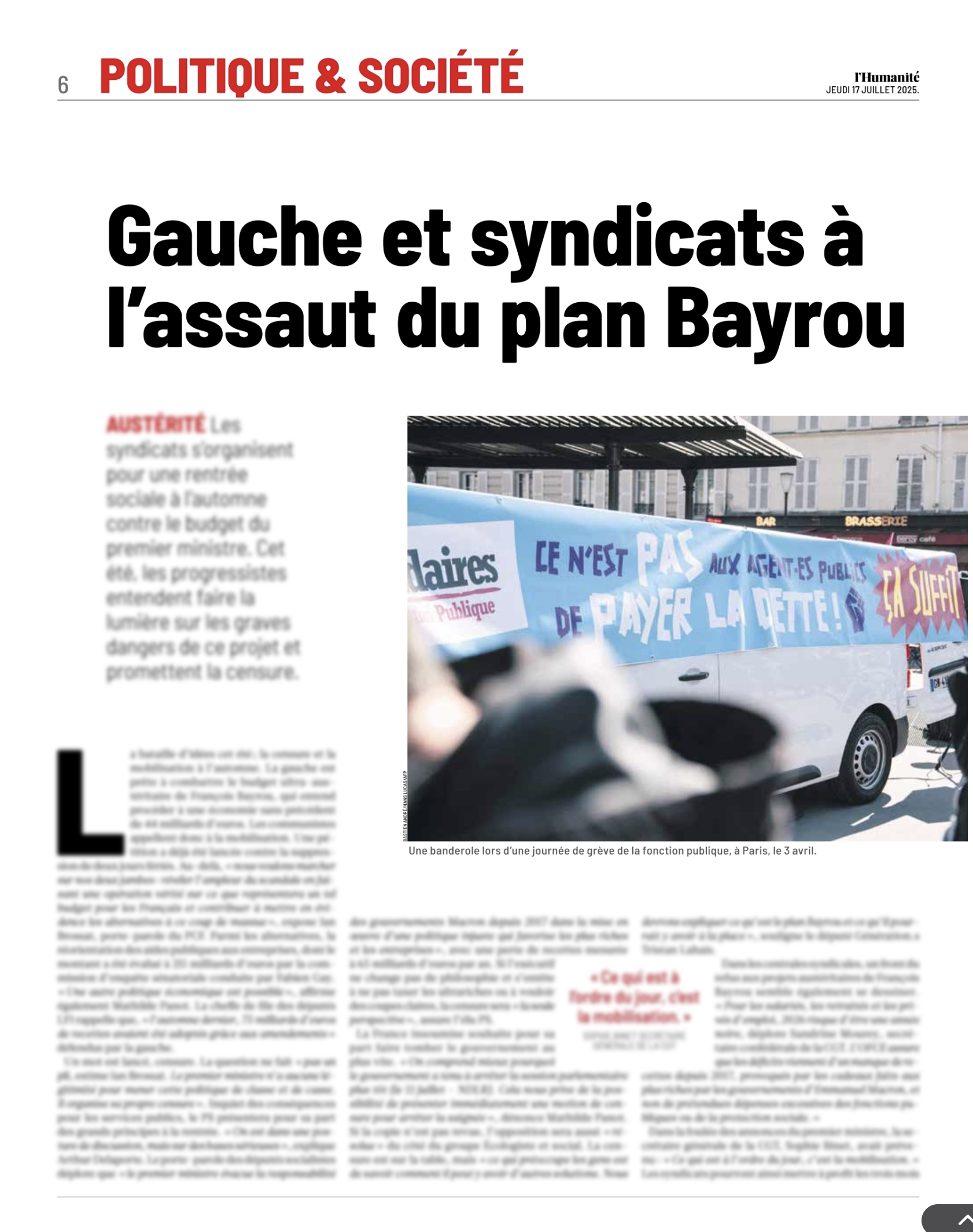 Bastien André Publications Séries / Archive Politique — Société — Sport Sélection de séries Politis - 03/12/2025 Le Figaro Economie - 29/11/2025 L'Humanité - 17/10/2025 Une de L'Humanité - 05/09/2025 Challenges - 28/08/2025 L'Humanité - 17/07/2025 L'Humanité - 02/07/2025 La Croix - 07/05/2025 Les Echos - 17/04/2025 Le Figaro - 17/04/2025 L'humanité - 03/04/2025 Le Figaro - 03/04/2025 Sciences et avenir - Avril 2025 L'Humanité - 10/03/2025 Le Figaro - 08/03/2025 Challenges - 06/03/2025 L'Humanité - 20/02/2025 Liberation - 14/02/2025 Ouest France - 18/10/2024 L'humanité - 11/10/2024