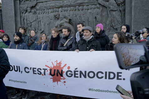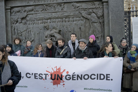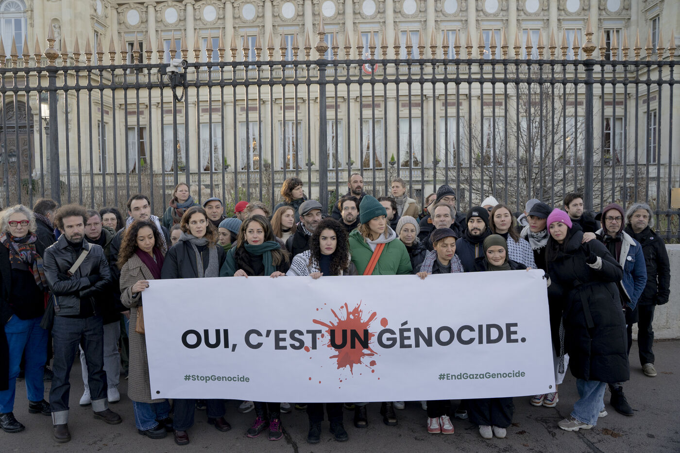 Paris, France. 2024-12-20 - The “Artiste pour la Palestine France” collective gathered in front of the Quai d'Orsay in Paris. They denounced the “ongoing genocide” in Gaza and called on the cultural community to get involved.