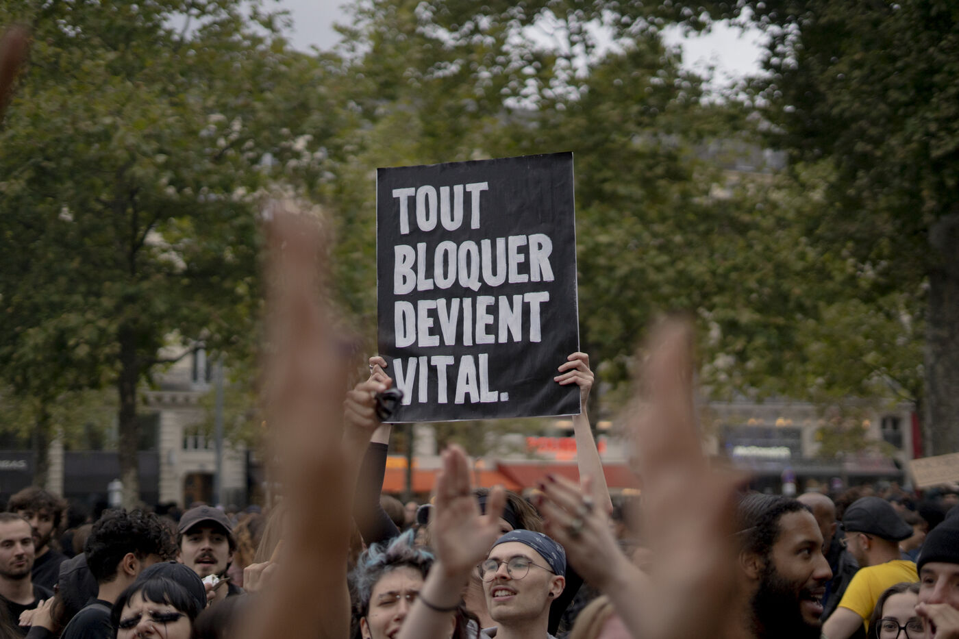 Blocage à Paris dans le cadre du mouvement 10 septembre. Photographie de Benjamin Beraud / Hans Lucas