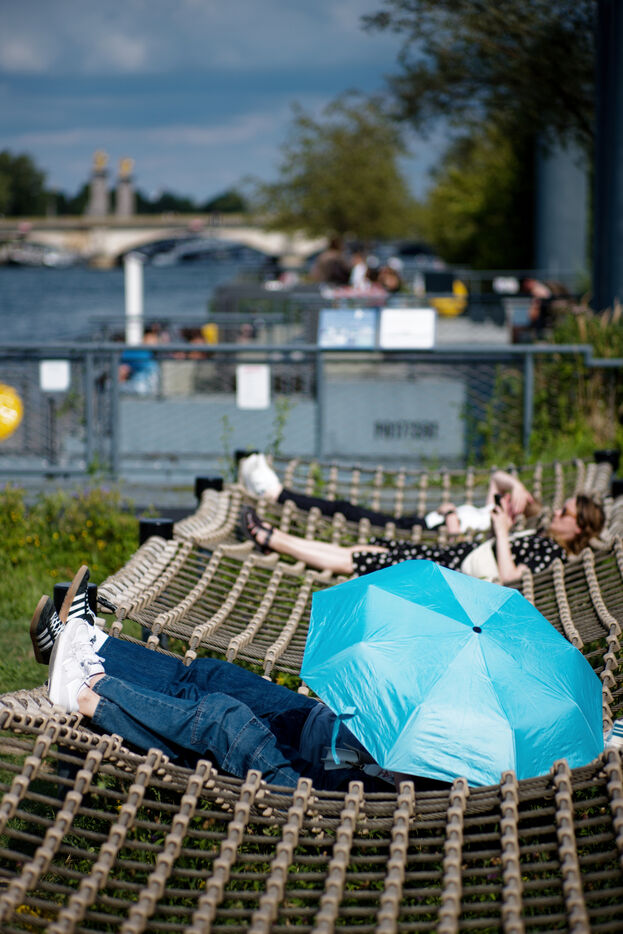 Ile de la cité - Paris - France, Paris Plage welcomes Parisians and tourists young and old for a moment of relaxation in the sun on the banks of the Seine.