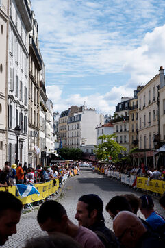 Rue Lepic - Paris - France a host of supporters await the riders for the final stage of the Tour de France 2025 on the cobbled streets of rue Lepic in Paris.