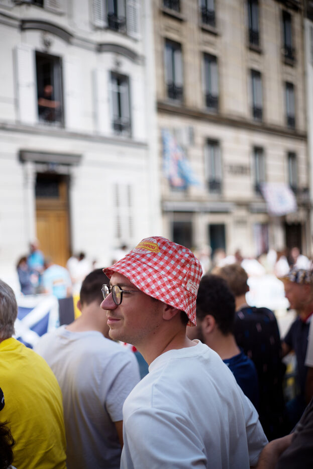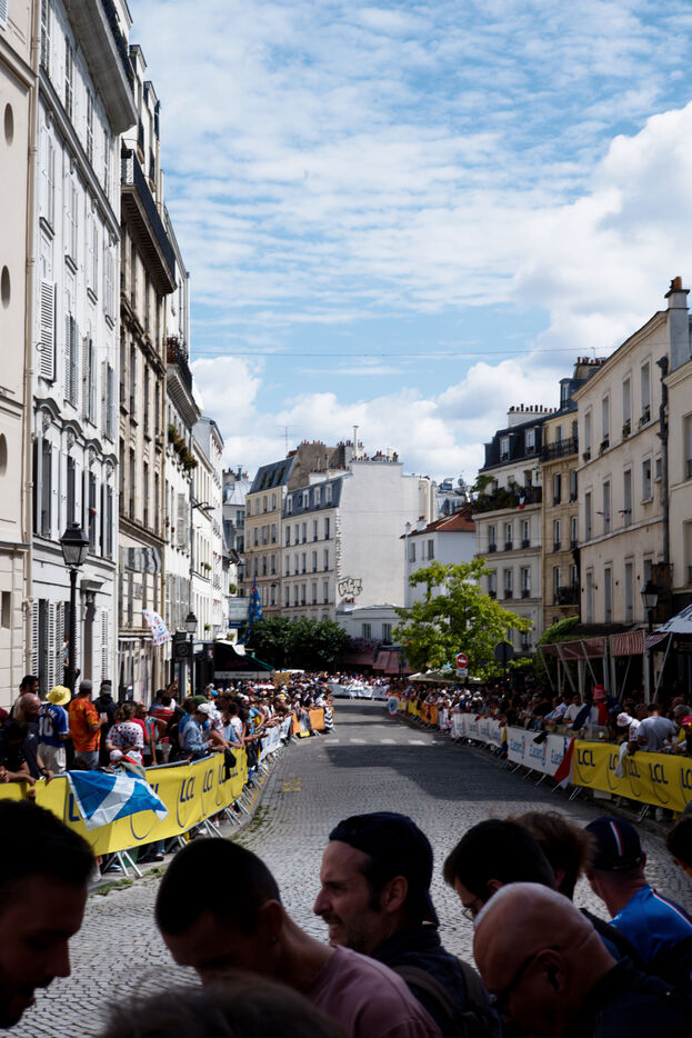 Rue Lepic - Paris - France de nombreux supporters attendent les coureurs pour la dernière étape du Tour de France 2025 sur les pavées de la rue Lepic à Paris.