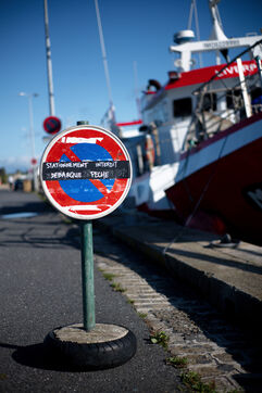 Roscoff, France: Trawlers are moored in Roscoff harbour, waiting to set sail again.