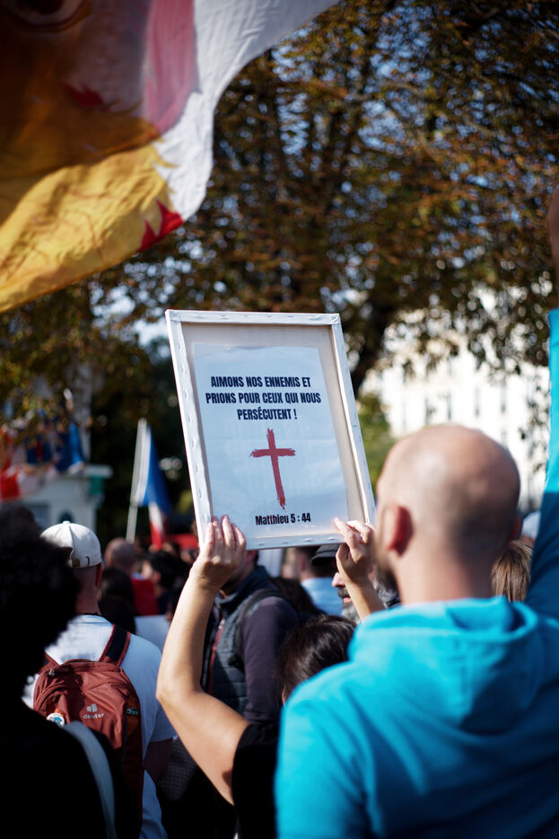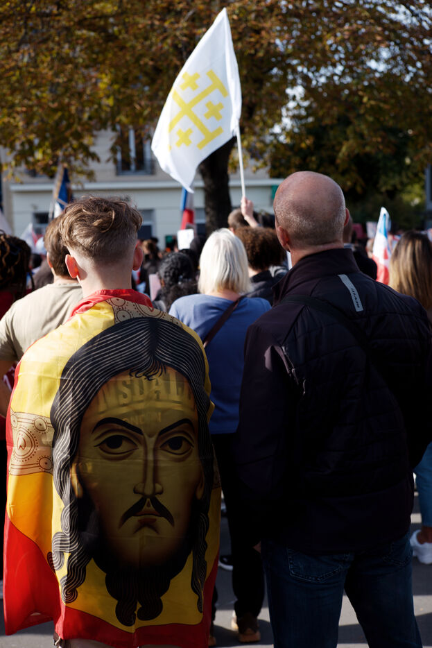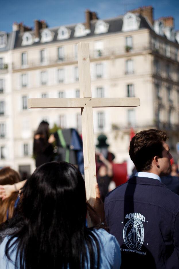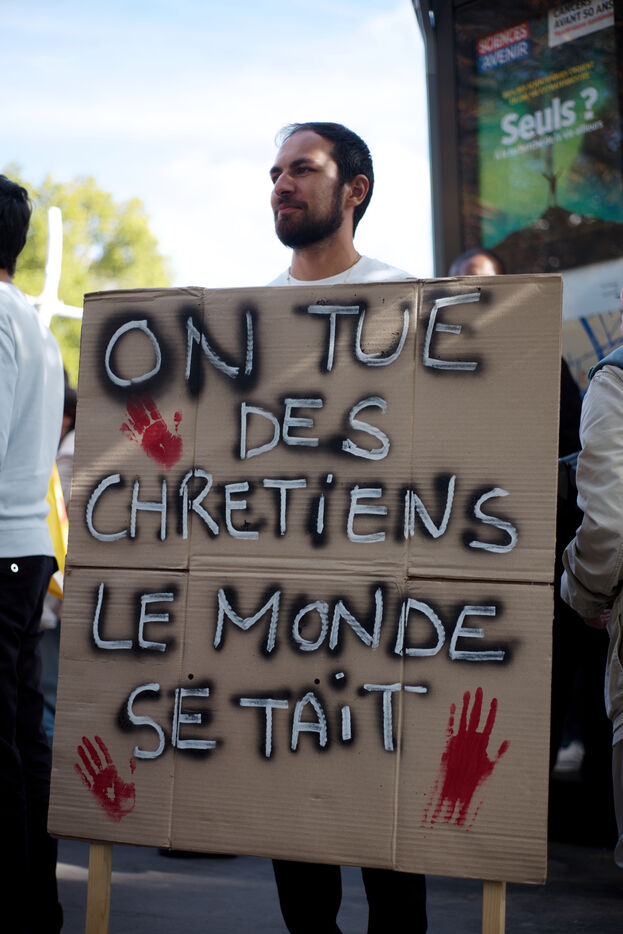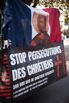 Paris - France : manifestation contre la christianophobie à l’appel de chrétiens catholiques et orthodoxes et de plusieurs associations dont SOS Chretien d’Orient. En mémoire d’Ashur Sarnaya, chrétien irakien assassiné récemment à Lyon