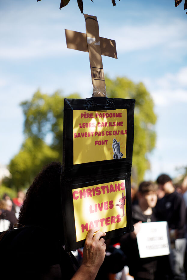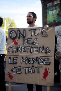 Paris - France: demonstration against Christianophobia organised by Catholic and Orthodox Christians and several associations, including SOS Chrétien d'Orient. In memory of Ashur Sarnaya, an Iraqi Christian recently murdered in Lyon.