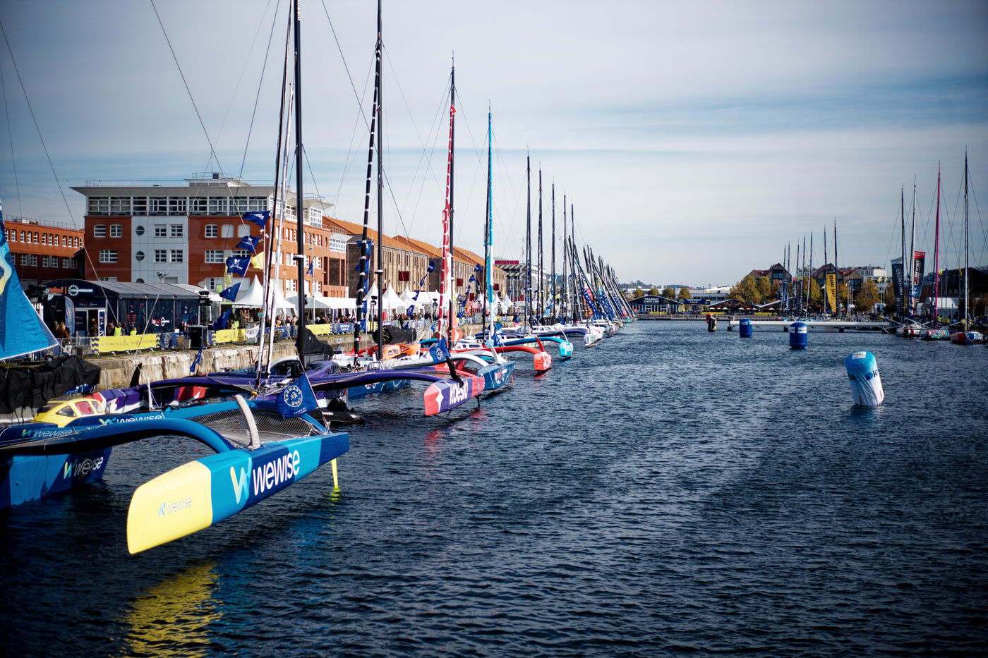 Le Havre - France : les meilleurs skippers, les Imocas, Class 40, Ultimes et Trimarans sont présents toute la semaine au village départ de la transat Café L’or qui partira du Havre le dimanche 26 octobre.
