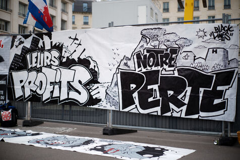 Paris - France : manifestation pour célébrer les 7 ans du mouvement des gilets jaunes place de la bourse à Paris. Un mouvement depuis sa création revendique plus de justice sociale et de démocratie participative.