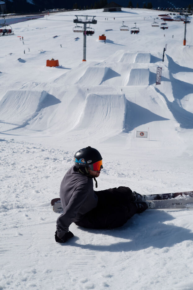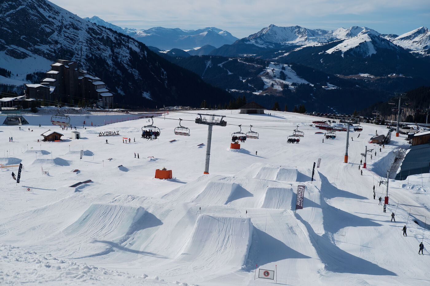 The Chapelle snowpark with its four lines of XS, S, M, and L kickers in the city of Avoriaz. Avoriaz's iconic snowpark has been welcoming skiers and snowboarders since the resort opened.