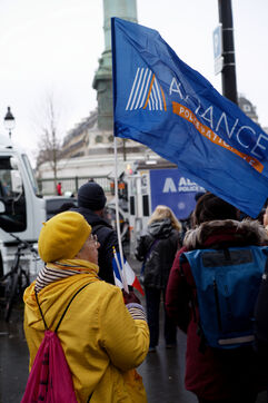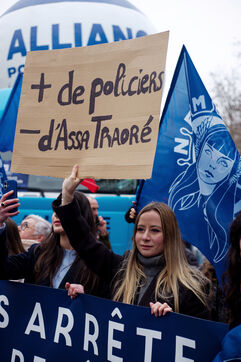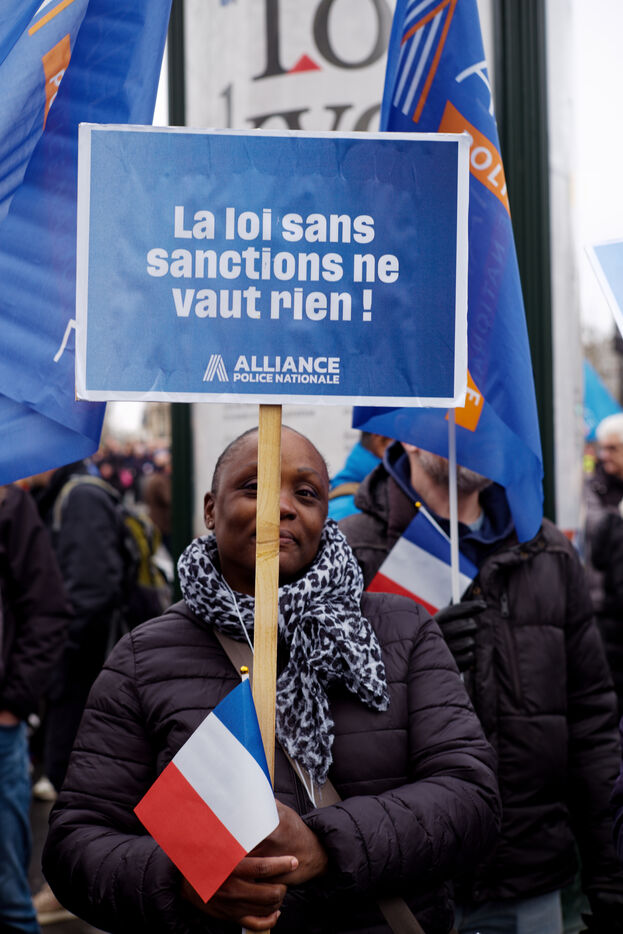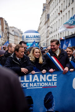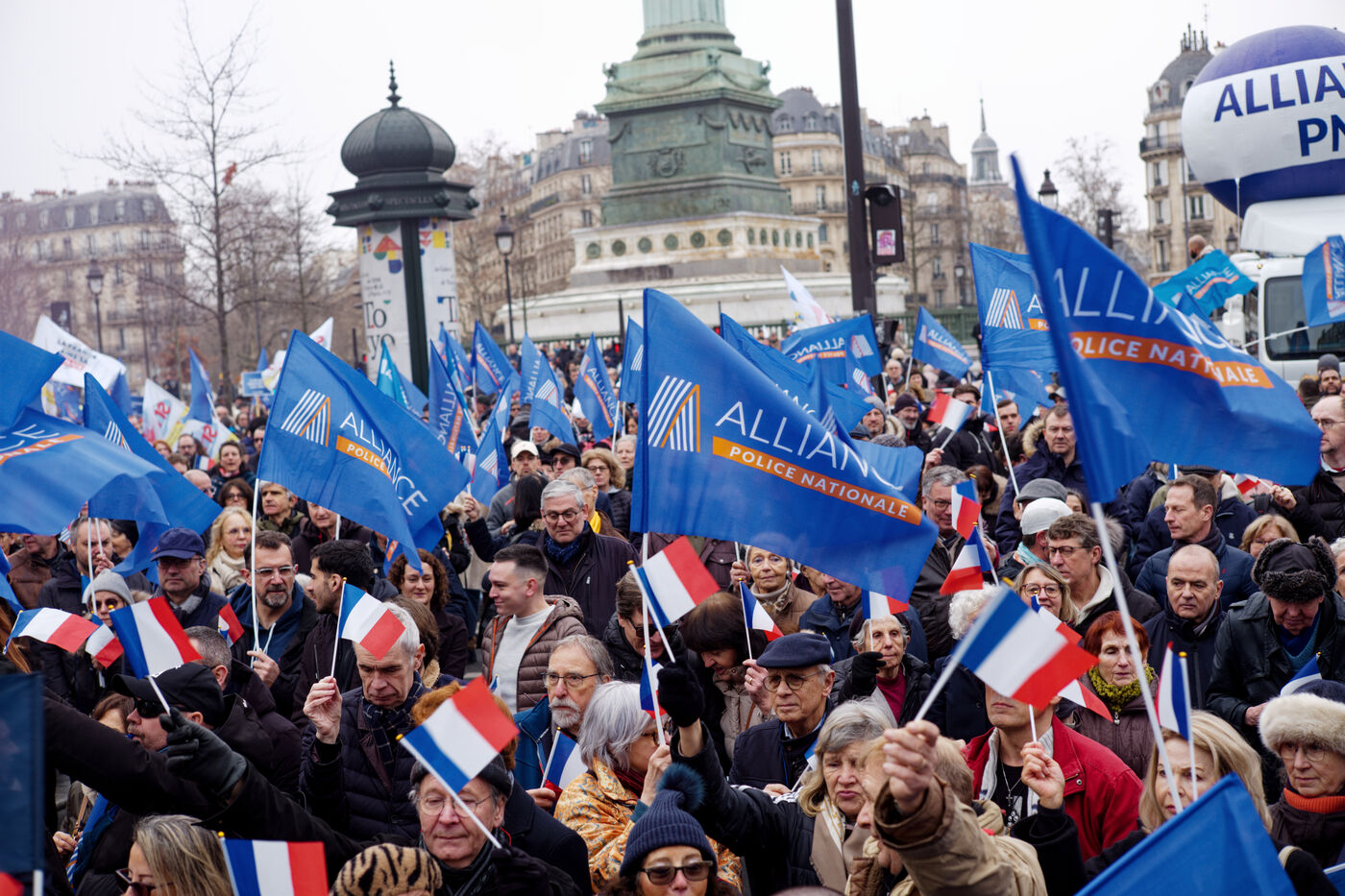 Paris, France: Citizen mobilisation by the Alliance National Police Union. The union warns that the national police force is in danger due to a lack of resources. Sarah Knafo, Marion Marechal and Nicolas Dupont Aignan were present in the procession.