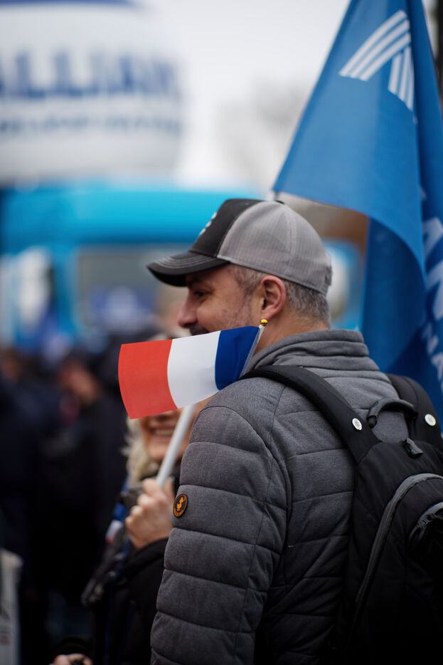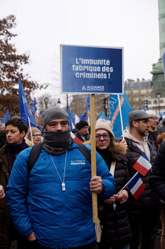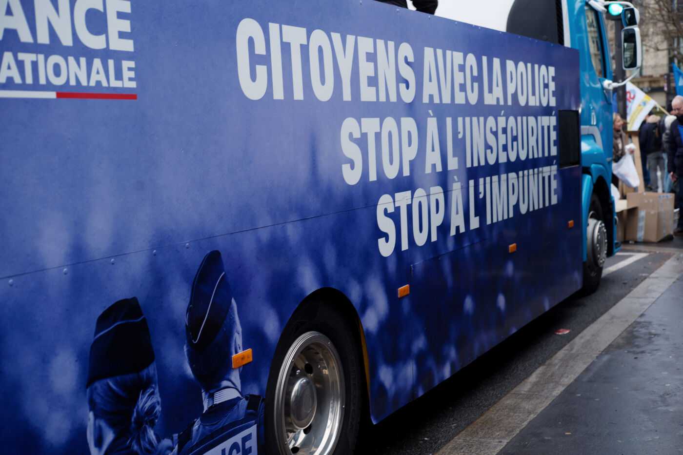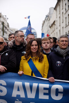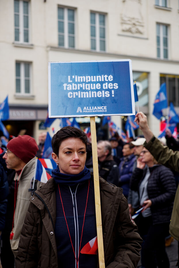 Paris - France : mobilisation citoyenne du syndicat de la Police Nationale Alliance. Le syndicat alerte sur une police nationale en danger faute de moyens. Sarah Knafo, Marion Marechal et Nicolas Dupont Aignan etaient presents dans le cortege.