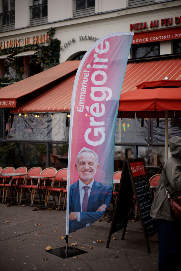 Paris, France: Socialist candidate Emmanuel Gregoire meets with Parisians ahead of the Paris municipal elections