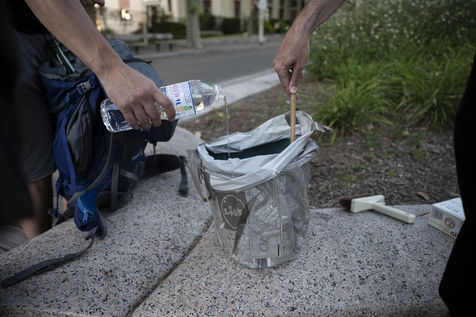 Des personnels de l'hôpital public sortent la veille de la manifestation des soignants pour coller leurs messages sur le parcours. Ils expriment leur colère sur la gestion de la crise du coronavirus durant le confinement.