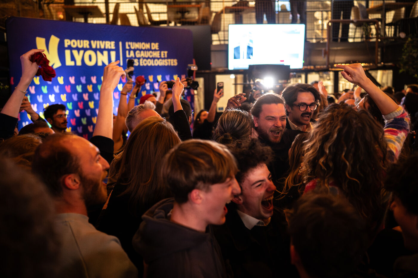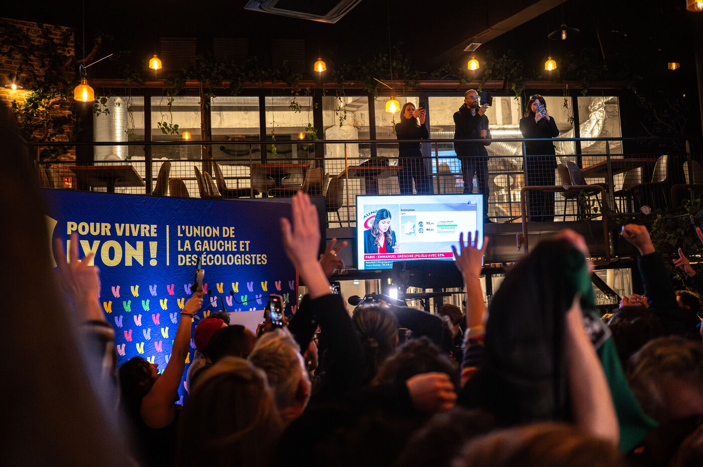 On the evening of the second round of the municipal and metropolitan elections in Lyon, at the campaign headquarters of the POUR VIVRE LYON list, a coalition of the Left and the Greens.