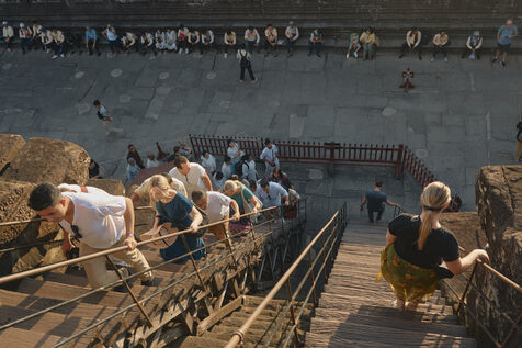 Il est 5h30 du matin, comme tous les jours de la saison sèche, la période la plus touristique au Cambodge, des centaines de visiteurs s'attroupent devant la façade du temple d’Angkor Wat pour immortaliser le lever du soleil. Ils viennent des 4 coins du globe pour admirer ce monument décrit par certains comme la 8ème merveille du monde.