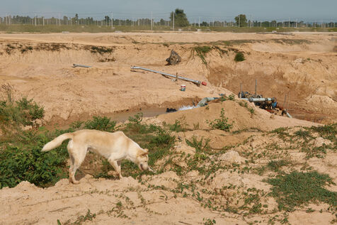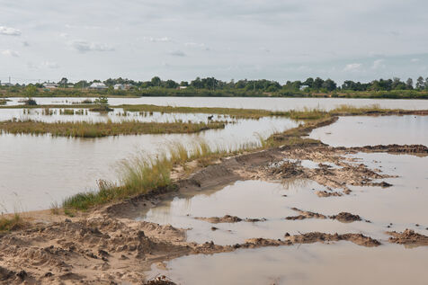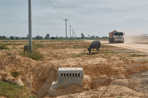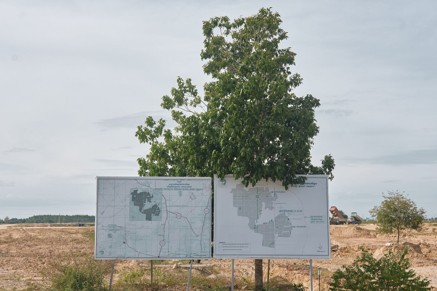 A plusieurs dizaines de kilomètres de là, des bulldozers et des camions s’activent à Peak Sneng. Il n’y a pas d’habitants mais déjà un futur hôpital, des câbles électriques pour chaque parcelle et un espace vide à perte de vue.