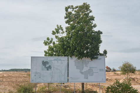 Several dozen kilometers away, bulldozers and trucks are busy at work in Peak Sneng. There are no residents, but there is already a future hospital, electrical cables for each plot, and empty space as far as the eye can see.