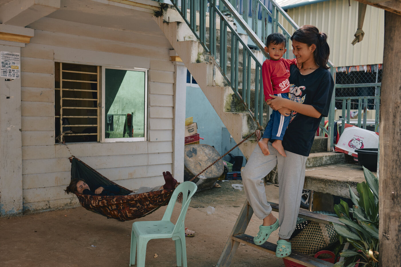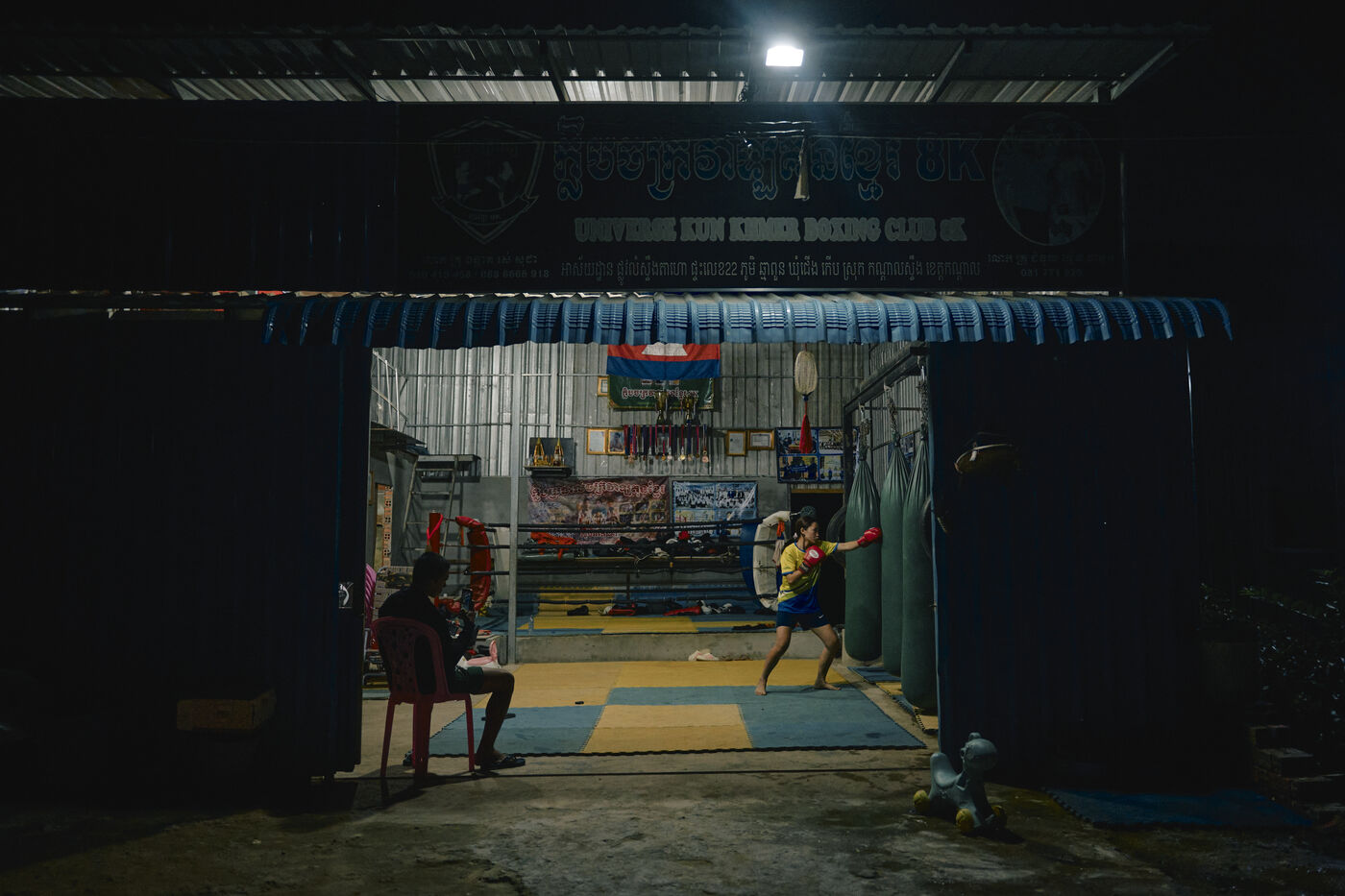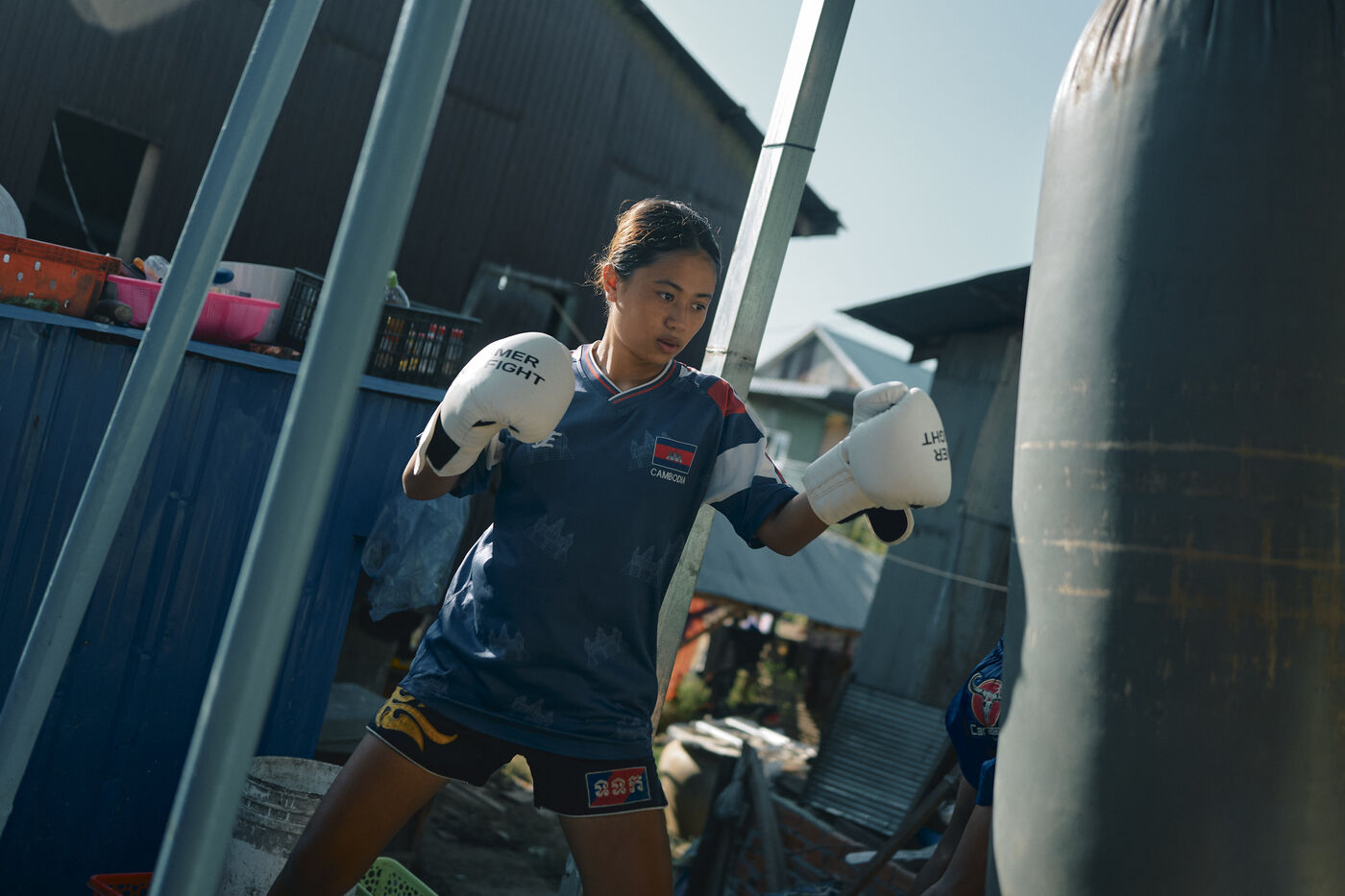 Le bruit des sacs de frappe résonne à un rythme effréné dans une salle en plein air, à quelques dizaines de kilomètres de Phnom Penh. C’est l’échauffement. Vanda, Souannita et Dalin, trois jeunes femmes, s’entraînent chaque jour sous la direction du père de Vanda, arbitre de Kun Khmer, la boxe cambodgienne. Il a d’abord entraîné sa fille, Vanda, puis les enfants du village sont venus. Ici, pas de confort : les chambres sont en tôle, les cours sont gratuits.