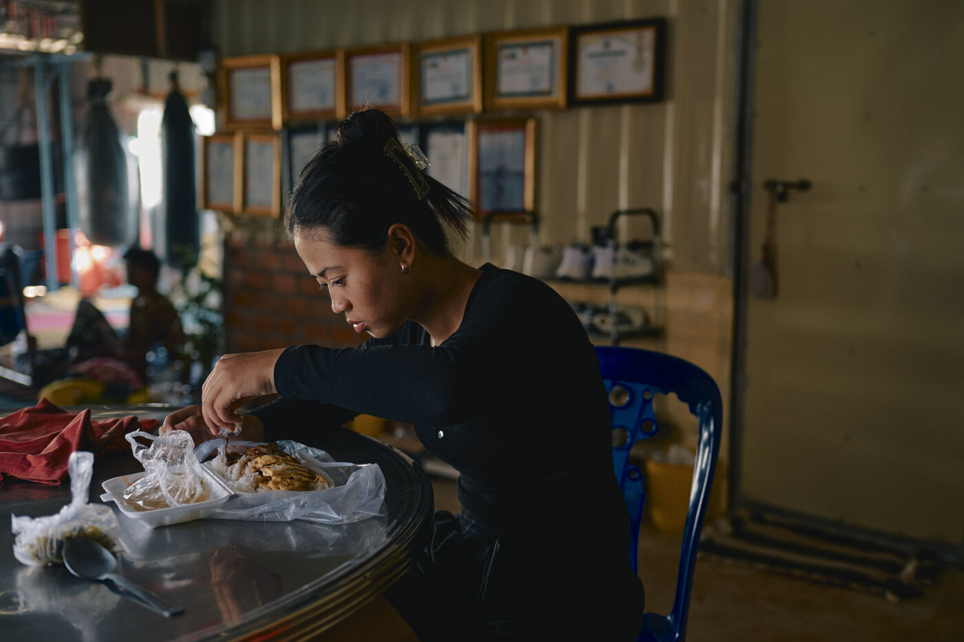Dans quelques jours, Souannita montera sur le ring lors du Water Festival, le festival de l’eau, le plus grand évènement annuel au royaume d’Angkor. Il y a aussi Sophéa, 15 ans, originaire de Siem Reap, figure montante qui combat de plus en plus sur les rings de la capitale. Plus au sud de Phnom Penh, Phan Ny enchaîne les journées harassantes à l’usine textile avant de s’entraîner tous les soir. Victoire ou défaite, il faut toujours se relever et y retourner : la famille en dépend.